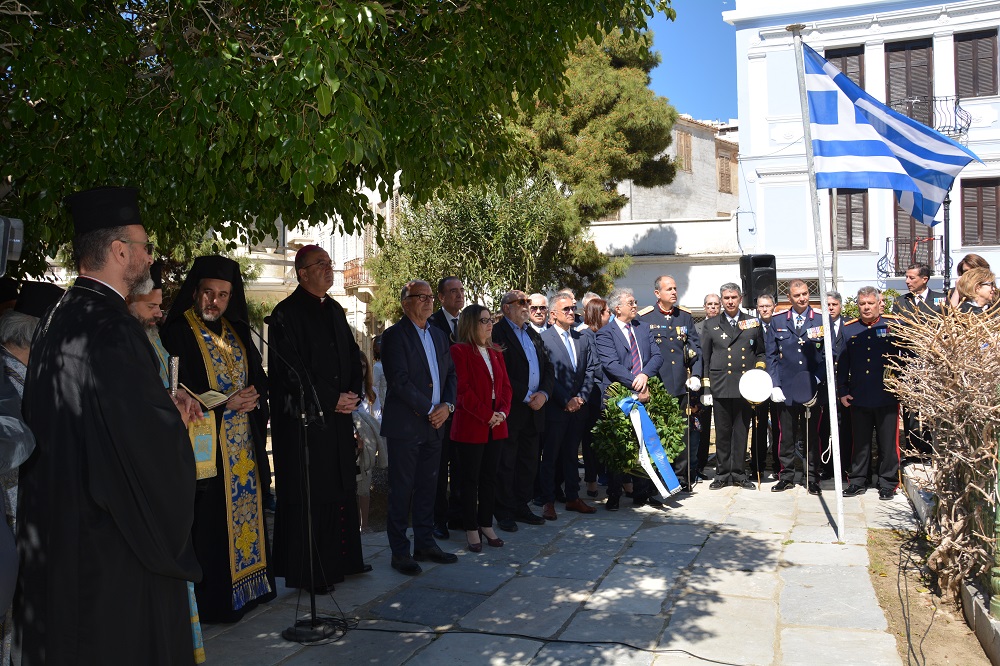 Την παραμονή της 25ης Μαρτίου, όπως κάθε χρόνο, πραγματοποιήθηκε η καθιερωμένη κατάθεση στεφάνων στα ιστορικά μνημεία της Ερμούπολης. Οι εκδηλώσεις άρχισαν με τη στεφάνωση στο μνημείο Μικρασιατικής μνήμης στον Ξηρόκαμπο από μαθητές του 6ου Δημοτικού Σχολείου Ερμούπολης και από τον Σύλλογο Μικρασιατών Ερμούπολης Σύρου. Ακολούθησε η κατάθεση στεφάνων στην προτομή του ταγματάρχη Γεωργίου Δουράτσου από τον πρόεδρο της Δημοτικής Κοινότητας Άνω Σύρου και από μαθητές του 1ου Δημοτικού Σχολείου Ερμούπολης. Στο Ηρώο των Πεσόντων, στεφάνι κατέθεσαν ο αντιπεριφερειάρχης Κυκλάδων Γ. Λεονταρίτης, οι μαθητές του ΕΠΑΛ Σύρου, του 4ου Πειραματικού Δημοτικού Σχολείου Ερμούπολης, του 5ου Δημοτικού Σχολείου Ερμούπολης, του ΕΝΕ.Ε.ΓΥ - Λ Σύρου, του Εσπερινού ΕΠΑΛ Σύρου καθώς και οι σπουδαστές και οι σπουδάστριες του Δημόσιου Ινστιτούτου Επαγγελματικής Κατάρτισης (ΔΙΕΚ) του Γενικού Νοσοκομείου Σύρου.