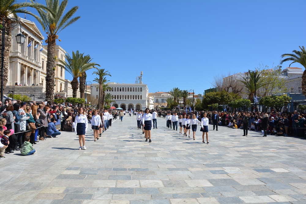 Με λαμπρότητα και μεγαλοπρέπεια εορτάστηκε η εθνική επέτειος της 25ης Μαρτίου στην πρωτεύουσα των Κυκλάδων. Οι μαθητές του νησιού, το πρωί του Σαββάτου, παρέλασαν με υπερηφάνεια στην κατάμεστη πλατεία Μιαούλη, γιορτάζοντας και τιμώντας τον Αγώνα του ΄21 για μία ελεύθερη Ελλάδα.