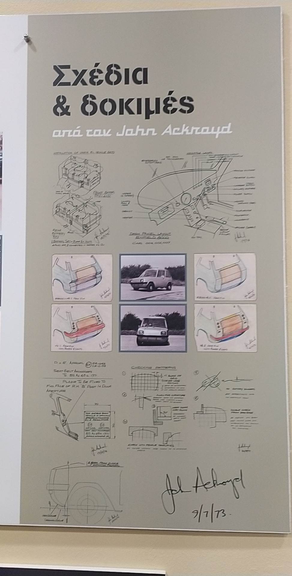 Στην έκθεση παρουσιάζονται πολύτιμα και άγνωστα στοιχεία για τον τρόπο κατασκευής του Enfield 8000, φωτογραφικό υλικό, προκατασκευαστικά σχέδια, ενώ στη μέση του εκθεσιακού χώρου δεσπόζει ένα από τα ελάχιστα εναπομείναντα αυθεντικά αυτοκίνητα καθώς και το διαδραστικό τραπέζι (CORING) Enfield, δωρεά του Πανεπιστημίου Αιγαίου.