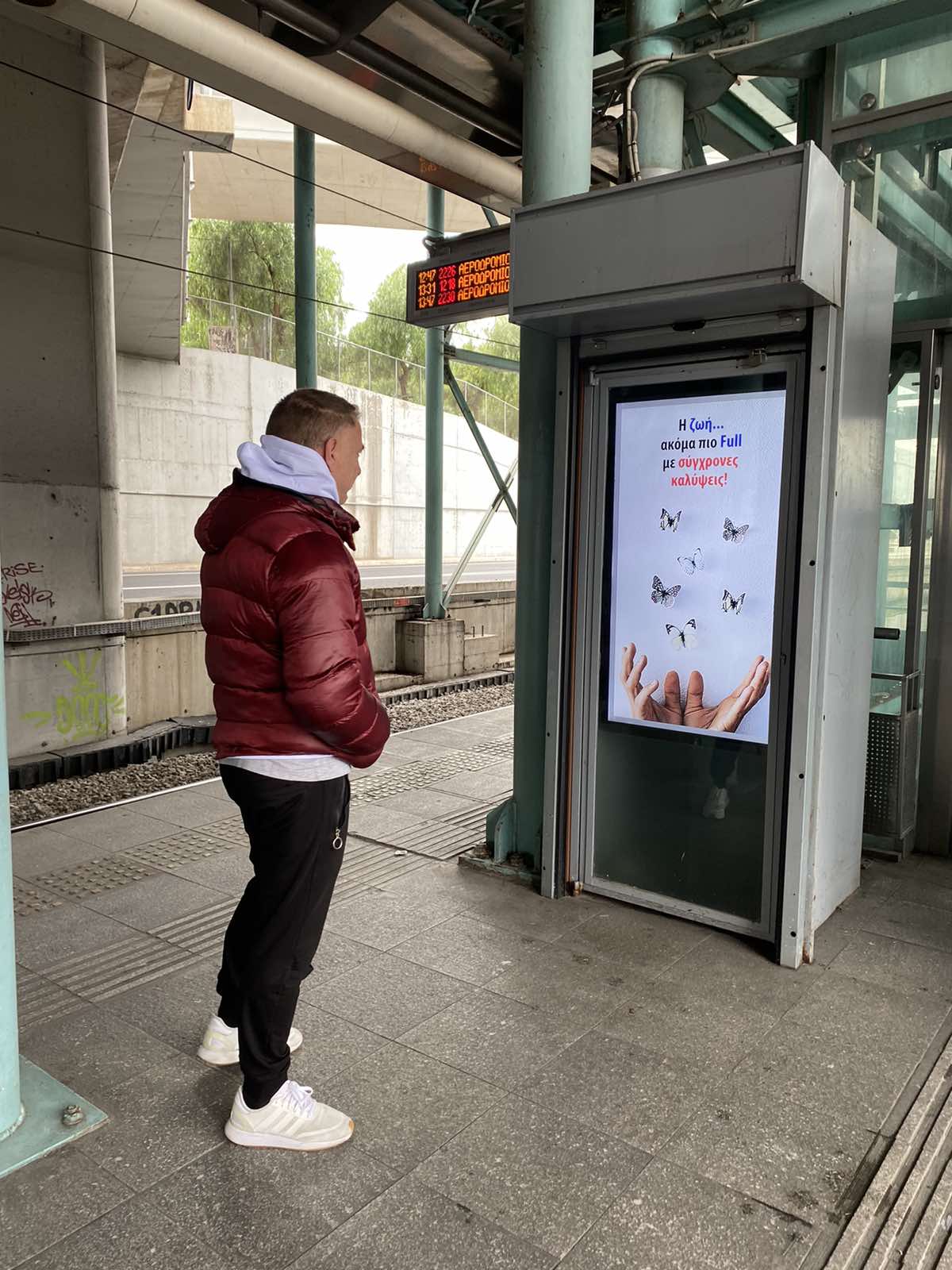 Επομένως υπάρχουν ενδιάμεσοι σταθμοί, που εξυπηρετούν διαφορετικές περιοχές και η διαφημιστική εταιρεία που έχει αναλάβει την προβολή του νησιού έχει πάρει έγκριση και έχει τοποθετήσει συγκεκριμένες οθόνες, πάνω σε πλατφόρμες όπου περιμένει το επιβατικό κοινό, και μπορεί να δει το υλικό, καθ’ όλη τη διάρκεια παραμονής του στον σταθμό.