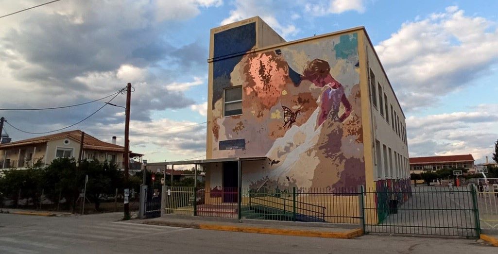Η τοιχογραφία έγινε στα πλαίσια του προγράμματος της UrbanAct «Ζωγραφίζοντας Σχολικά Κτίρια» και υλοποιήθηκε μετά απο πρόσκληση του Συλλόγου Γονέων και Κηδεμόνων, από τον Life In Colour.