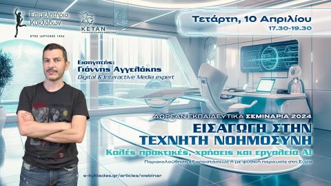 Το πρώτο, που απευθύνεται στους επιχειρηματίες όλων των κλάδων των επιχειρήσεων, έχει θέμα «Εισαγωγή στην Τεχνητή Νοημοσύνη: καλές πρακτικές, χρήσεις και εργαλεία AI» και θα διεξαχθεί την Τετάρτη 10 Απριλίου, 17.30-19.30.