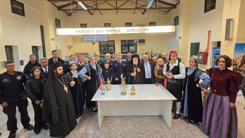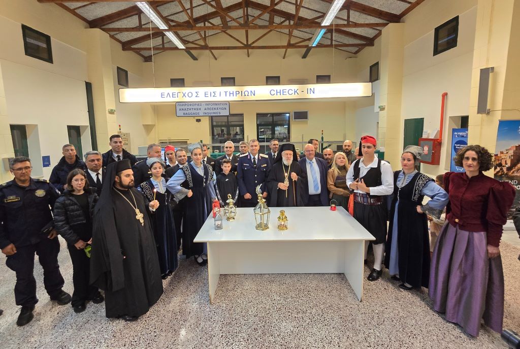 Το Άγιος Φως, που μεταφέρθηκε στην πρωτεύουσα των Κυκλάδων, αμέσως μετά την άφιξή του στο αεροδρόμιο “Ελ. Βενιζέλος” της Αθήνας από τα Πανάγια Προσκυνήματα των Ιεροσολύμων με ιδιωτικό αεροσκάφος, το οποίο ναύλωσε ο πρόεδρος και διευθύνων σύμβουλος του ομίλου Onex Syros Shipyards, Πάνος Ξενοκώστας, υποδέχθηκε ο μητροπολίτης Σύρου, κ. Δωρόθεος, καθώς επίσης ο δήμαρχος Σύρου – Ερμούπολης, Αλέξης Αθανασίου, δημοτικοί και κοινοτικοί σύμβουλοι, η αερολιμενάρχης Βασιλική Πρέκα, κληρικοί, καθώς και αξιωματικοί των Ενόπλων Δυνάμεων και των Σωμάτων Ασφαλείας.