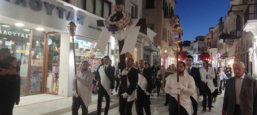 Παράλληλα, ο μητροπολίτης Σύρου προέστη της ακολουθίας του επιταφίου θρήνου στον ιερό μητροπολιτικό ναό της Μεταμορφώσεως του Σωτήρος και ακολούθως ετέθη επικεφαλής της λιτανευτικής πομπής του ιερού Επιταφίου προς την ιστορική πλατεία Μιαούλη.