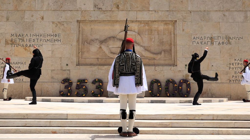 Συγκινητικές ήταν οι στιγμές στο Σύνταγμα, όταν Εύζωνες με ποντιακή στολή, πραγματοποίησαν την αλλαγή φρουράς στην πλατεία Συντάγματος, με αφορμή την ημέρα μνήμης για τη Γενοκτονία των Ποντίων, πριν από 105 χρόνια.