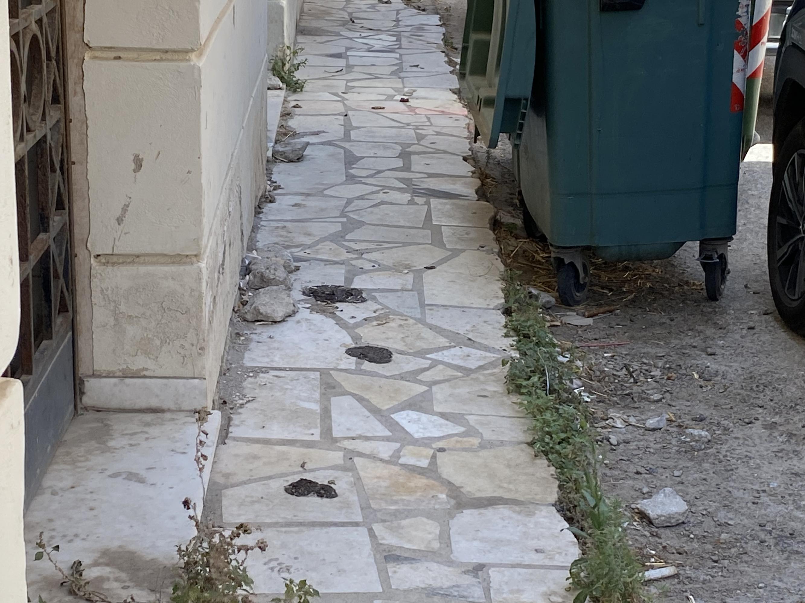 Σε όλο αυτό το "εκρηκτικό" σκηνικό, το οποίο παραπέμπει σε υγειονομική "βόμβα", λόγω και των αυξημένων θερμοκρασιών που επικρατούν τη φετινή καλοκαιρινή περίοδο, θα πρέπει να προστεθεί και η κάκιστη εικόνα που παρουσιάζεται από τα κάθε λογής σκουπίδια που υπάρχουν διάσπαρτα, λόγω της μη ύπαρξης των κάδων απορριμμάτων, αλλά και το χόρτων που έχουν φυτρώσει ανάμεσα στις πλάκες του πεζοδρομίου.
