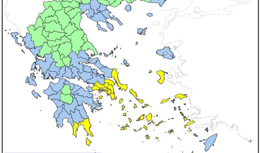 Σύμφωνα με τον Χάρτη, στην κατηγορία κινδύνου βρίσκονται οι περιοχές: Αττική και Κύθηρα, Λακωνία και νότια Εύβοια, Κρήτη, Κυκλάδες, Δωδεκάνησα και Βορειοανατολικό Αιγαίο.