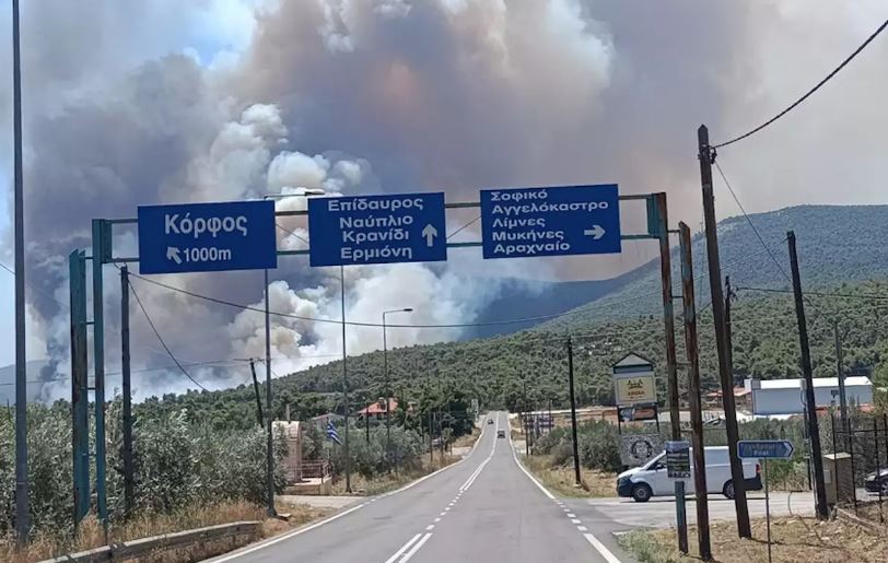Στο μεταξύ διακόπηκε η κυκλοφορία των οχημάτων σε τμήμα της λεωφόρου Επιδαύρου, λόγω της πυρκαγιάς στο Σοφικό Κορινθίας.