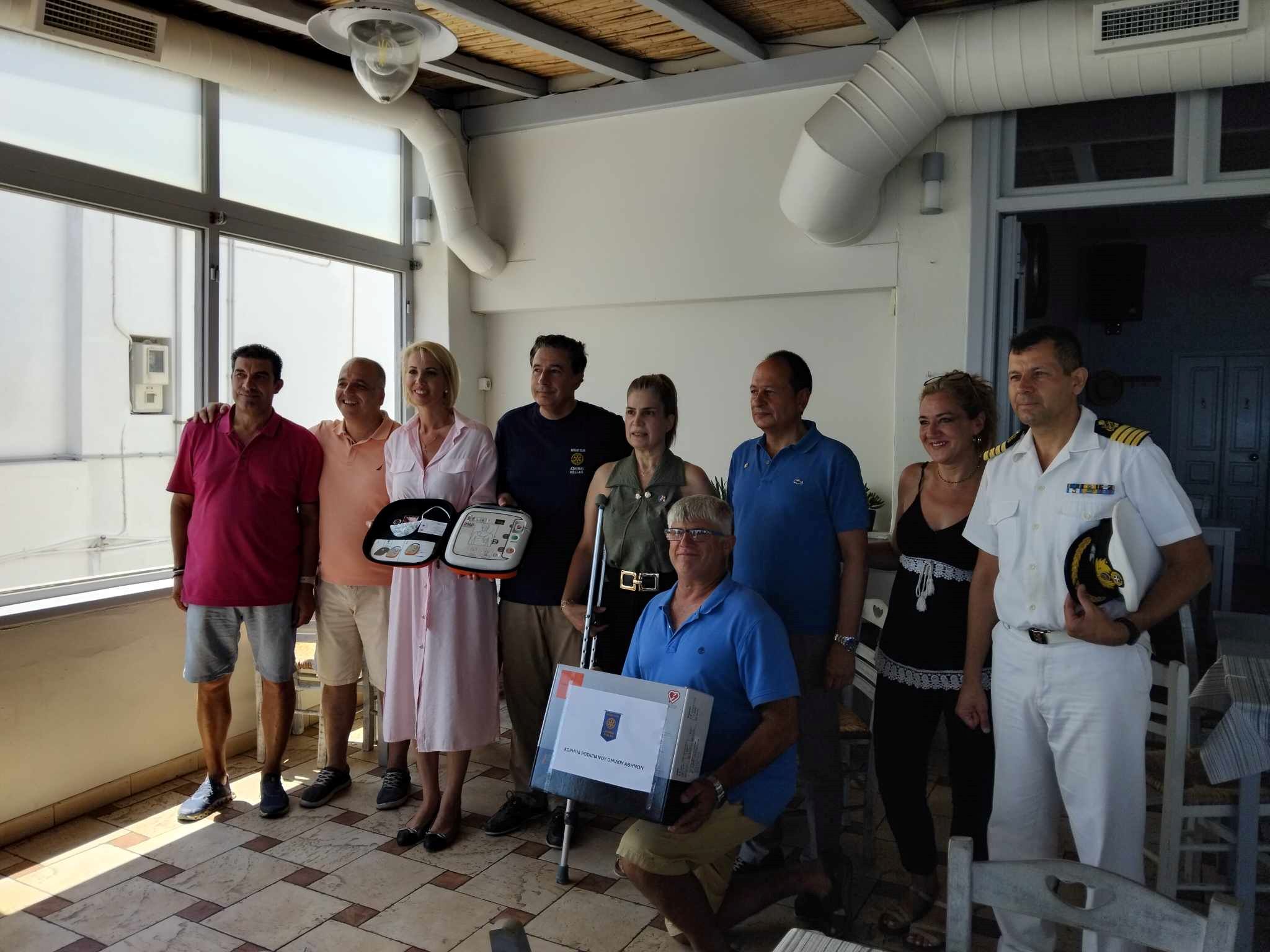 Να σημειωθεί ότι στην εκδήλωση παράδοσης- παραλαβής συμμετείχαν η βουλευτής Κυκλάδων, Κατερίνα Μονογυιού, η οποία αποτέλεσε τον συνδετικό "κρίκο" για την απόκτηση του απινιδωτή, καθώς επίσης οι πρόεδροι των Ροταριανών Ομίλων Αθήνας και Σύρου, Αναστάσιος Μπάλλας και Σοφία Δρακοτού αντίστοιχα, όπως επίσης και ο διοικητής της 2475 Διεθνούς Περιφέρειας, Ροταριανός, Νικόλαος Μαργαρόπουλος.