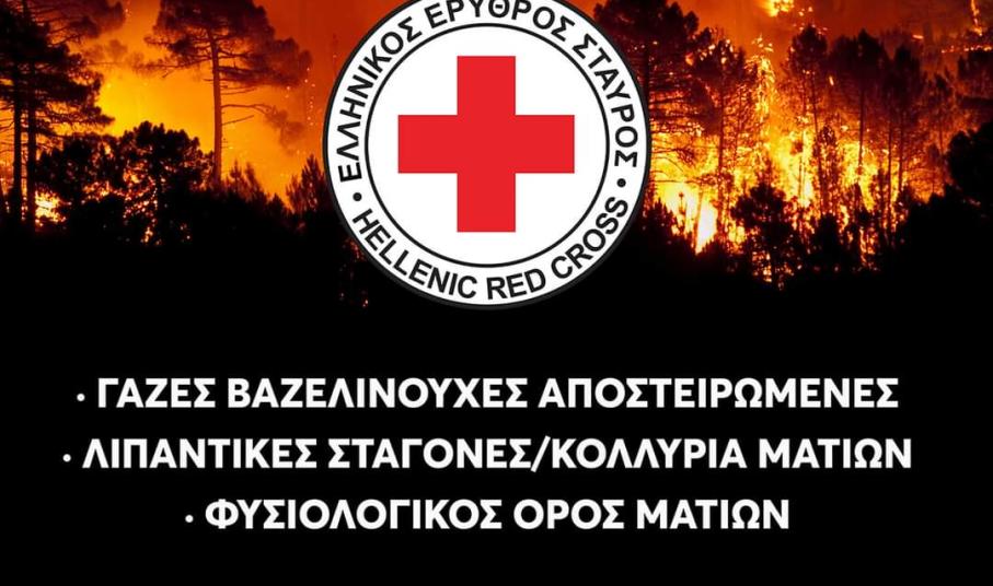 Συλλογή τροφίμων και υγειονομικού υλικού για τους πυρόπληκτους της Αττικής, συλλέγει το Περιφερειακό Τμήμα του Ελληνικού Ερυθρού Σταυρού.