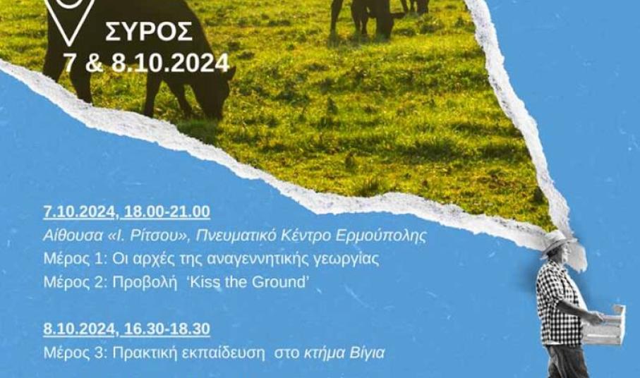 Η αναγεννητική καλλιέργεια, μία μέθοδος δηλαδή που δεν εστιάζει μόνο στη διατήρηση των πόρων του εδάφους, αλλά φροντίζει σημαντικά για την αποκατάσταση και τη βελτίωσή τους, είναι το θέμα του διήμερου εκπαιδευτικού σεμιναρίου θα πραγματοποιηθεί στη Σύρο στις 7 και 8 Οκτωβρίου.
