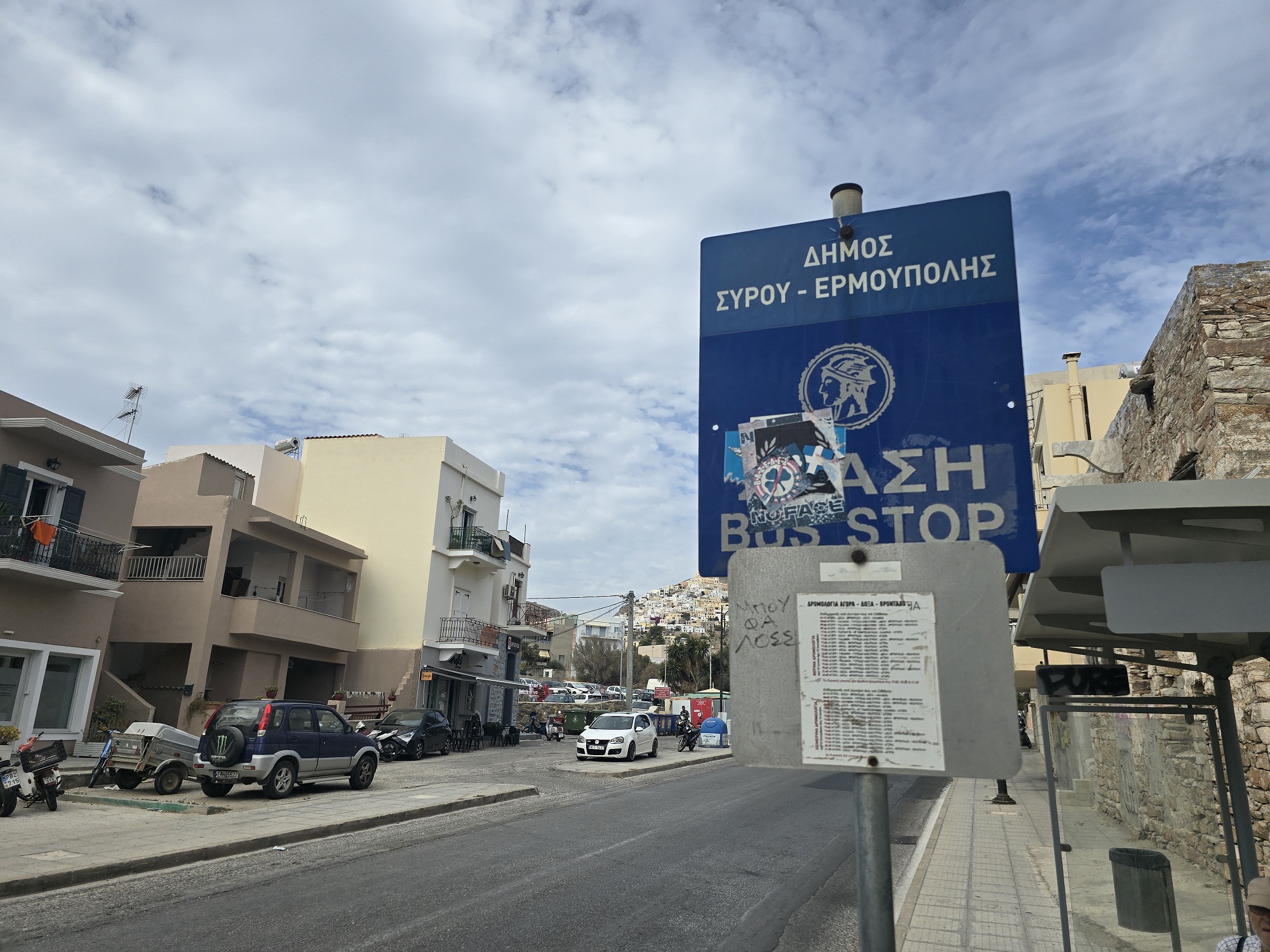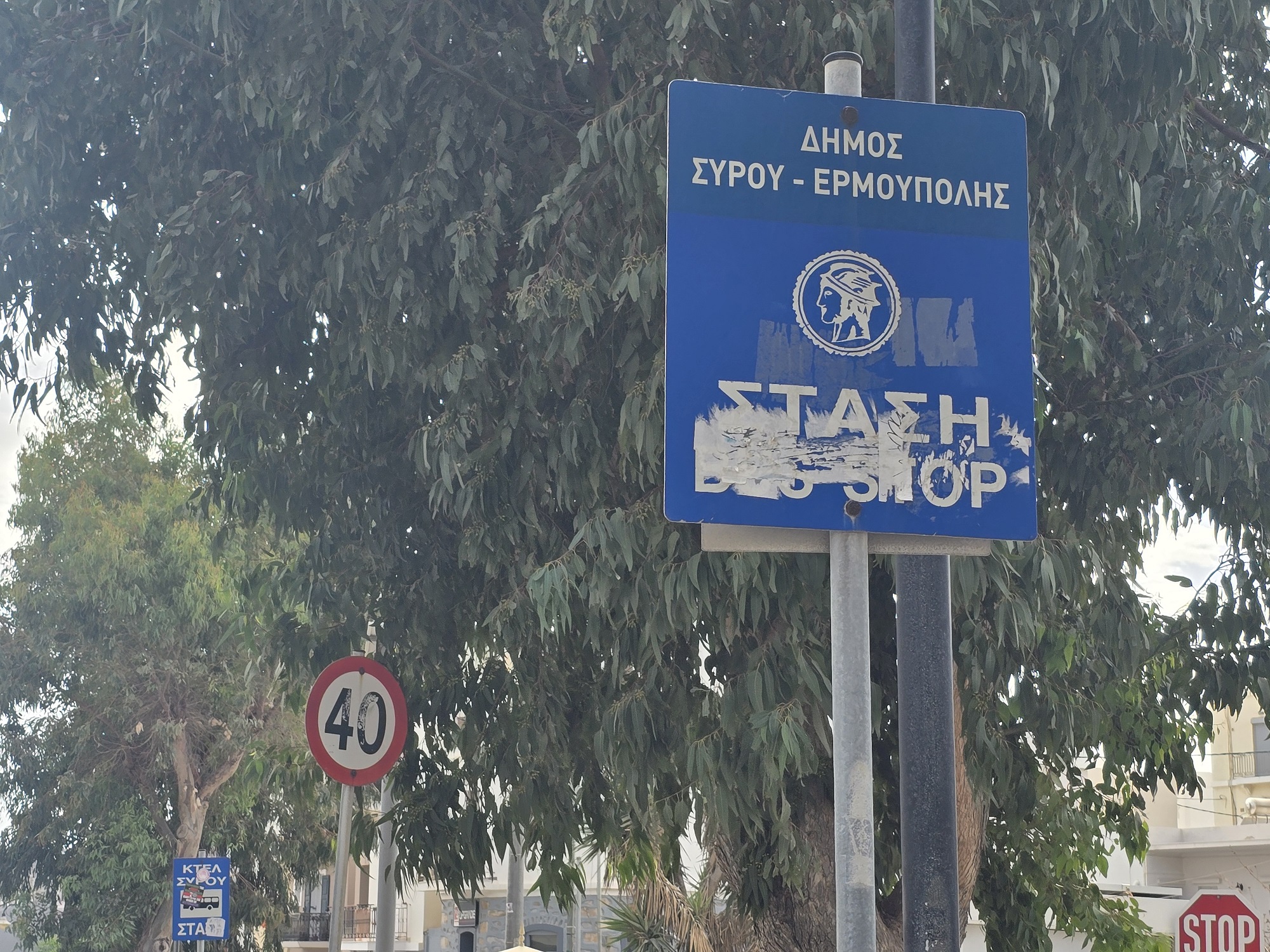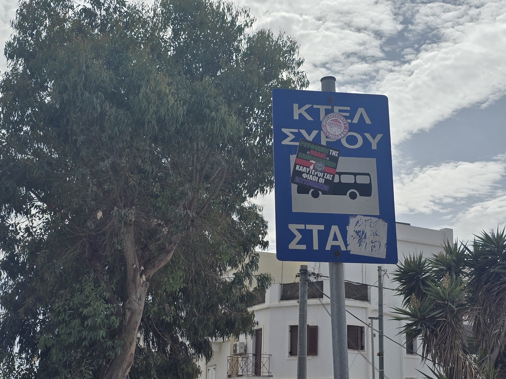 Με μία απλή βόλτα σε κάποιους από τους δρόμους της Ερμούπολης, είναι εύκολο να αντιληφθεί κανείς πως οι περισσότερες πινακίδες του Κώδικα Οδικής Κυκλοφορίας, αποτελούν πεδίο έκφρασης οπαδικών προτιμήσεων.
