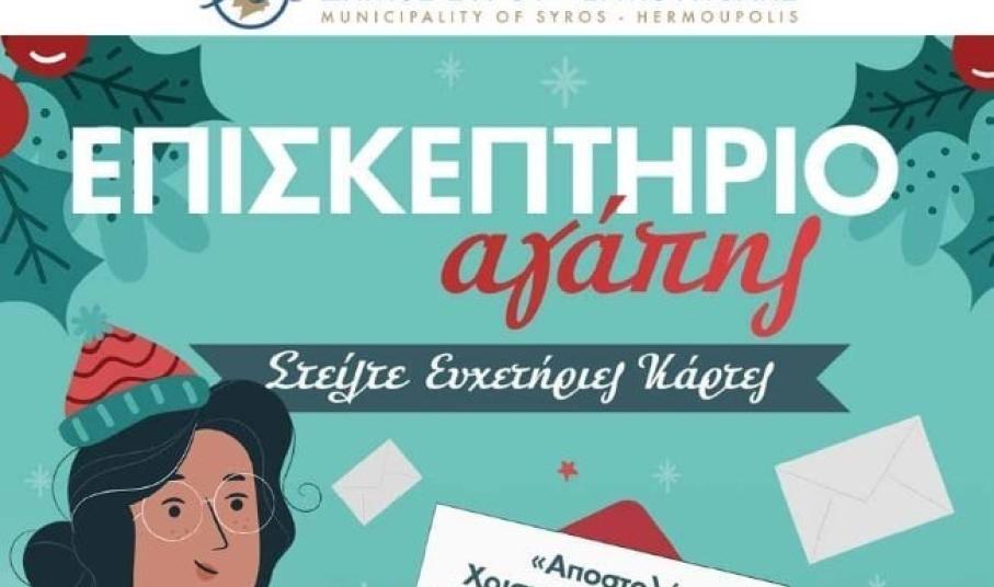 Όπως κάθε χρόνο, έτσι και φέτος, ο Δήμος Σύρου-Ερμούπολης, λίγες ημέρες πριν από την περίοδο των εορτών, καλεί τους κατοίκους του νησιού, να δημιουργήσουν τις κάρτες "αγάπης".