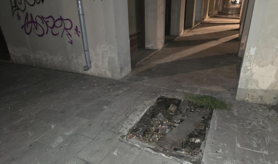 Για να είμαστε πιο ακριβείς, στους ισόγειους χώρους του ενός κτηρίου, υπάρχουν ανοιχτές πόρτες που ο αέρας και όχι μόνο, έχει μεταφέρει στο εσωτερικό τους κάθε λογής αντικείμενο, με αποτέλεσμα να τους έχει μετατρέψει σε σκουπιδότοπο. Μάλιστα, γύρω από αυτό το κτήριο εντοπίζονται καθημερινά εκατοντάδες περιστέρια, τα οποία αφήνουν πίσω τα περιττώματά τους, καθώς φωλιάζουν μέσα και έξω από αυτό.