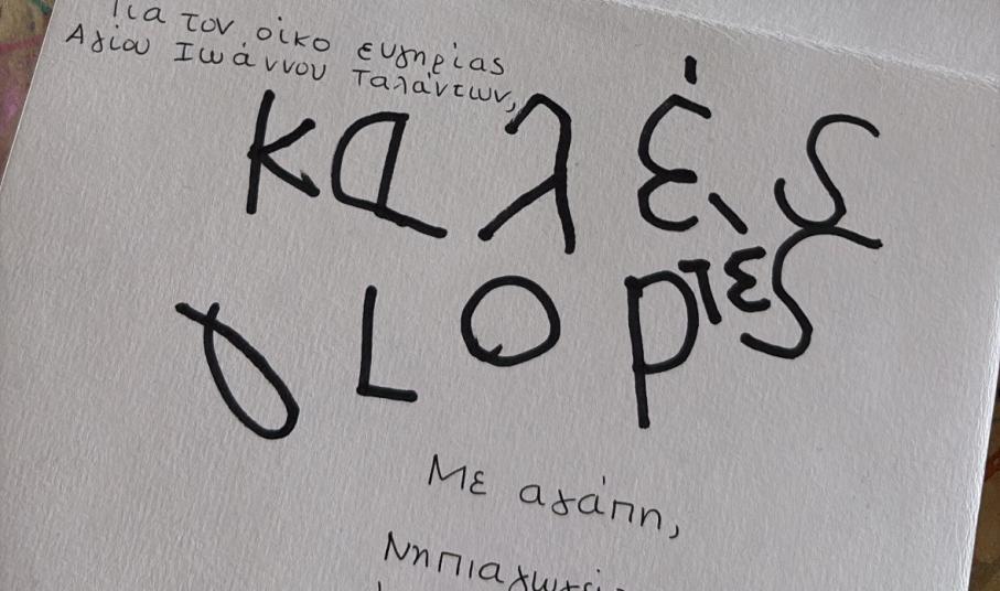 "Μαζί με τα τρόφιμα αυτά, οι μαθητές μας φιλοτέχνησαν και έστειλαν κάρτες γεμάτες ευχές οπού ταξίδεψαν στο όμορφο Κυκλαδονήσι, αλλά και την δομή και ζέσταναν τις καρδιές όλων.