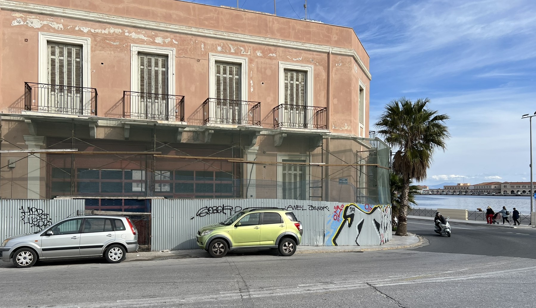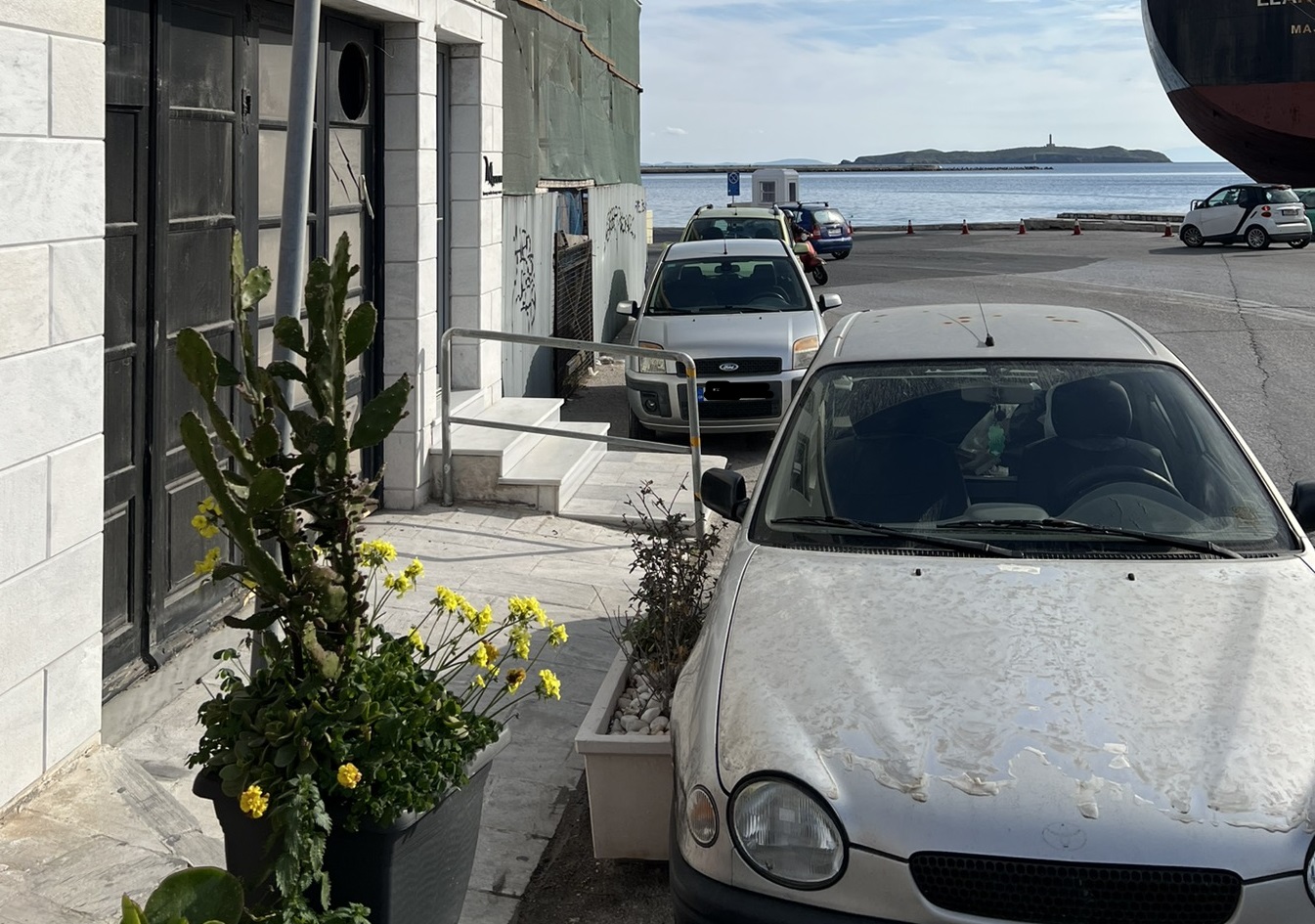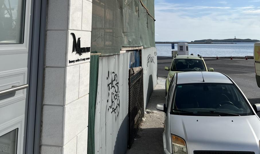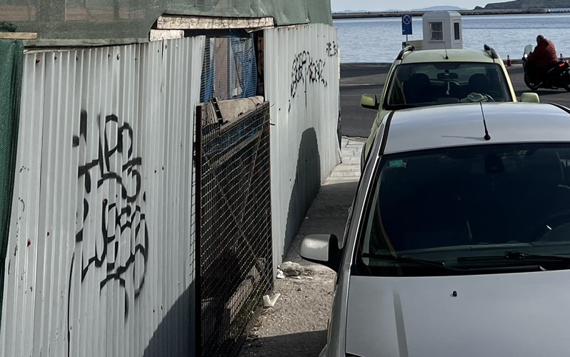 Μία πολύ δυσάρεστη εικόνα αντιμετωπίζουν καθημερινά όσοι πεζοί προσπαθούν να διασχίσουν το πεζοδρόμιο που περνάει μπροστά από το κτήριο της παλιάς Πυροσβεστικής στο λιμάνι της Ερμούπολης.