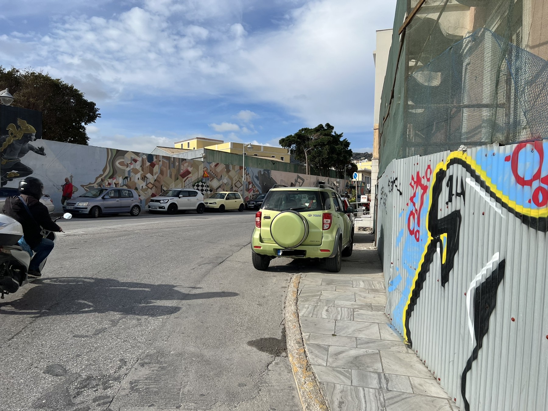 Ελλείψει χώρων στάθμευσης ή για την "ευκολία" τους, πολλοί οδηγοί καταλήγουν να παρκάρουν τα αυτοκίνητά τους, πάνω στο πεζοδρόμιο με αποτέλεσμα τις περισσότερες φορές, οι πεζοί να αναγκάζονται να βγουν στον δρόμο για να περάσουν από το συγκεκριμένο σημείο.