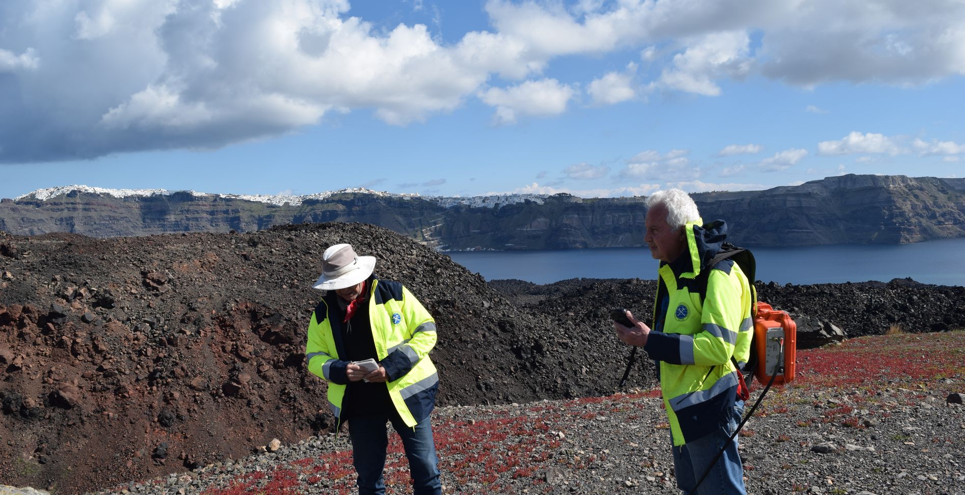 Επιστημονικό κλιμάκιο της ΕΑΓΜΕ, αποτελούμενο από τον Δρ. Ηφαιστειολόγο Γεώργιο Βουγιουκαλάκη και τον Γεωλόγο Μάρκο Ξενάκη, σε συνεργασία με το Ινστιτούτο Μελέτης και Παρακολούθησης του Ηφαιστείου Σαντορίνης (ΙΜΠΗΣ) και με τη στήριξη της Ένωσης Λεμβούχων Θήρας, εκτέλεσε μετρήσεις στα αέρια των ατμίδων και στα αέρια που εκλύονται από το έδαφος στην κορυφή του νησιού στο κέντρο της καλδέρας της Σαντορίνης, ολοκλήρωσε μετρήσεις για τη φυσικοχημική κατάσταση της περιοχής και αποτυπώθηκε η θερμική κατάσταση του χώρου με τη χρήση υπέρυθρων εικόνων υψηλής ευκρίνειας.