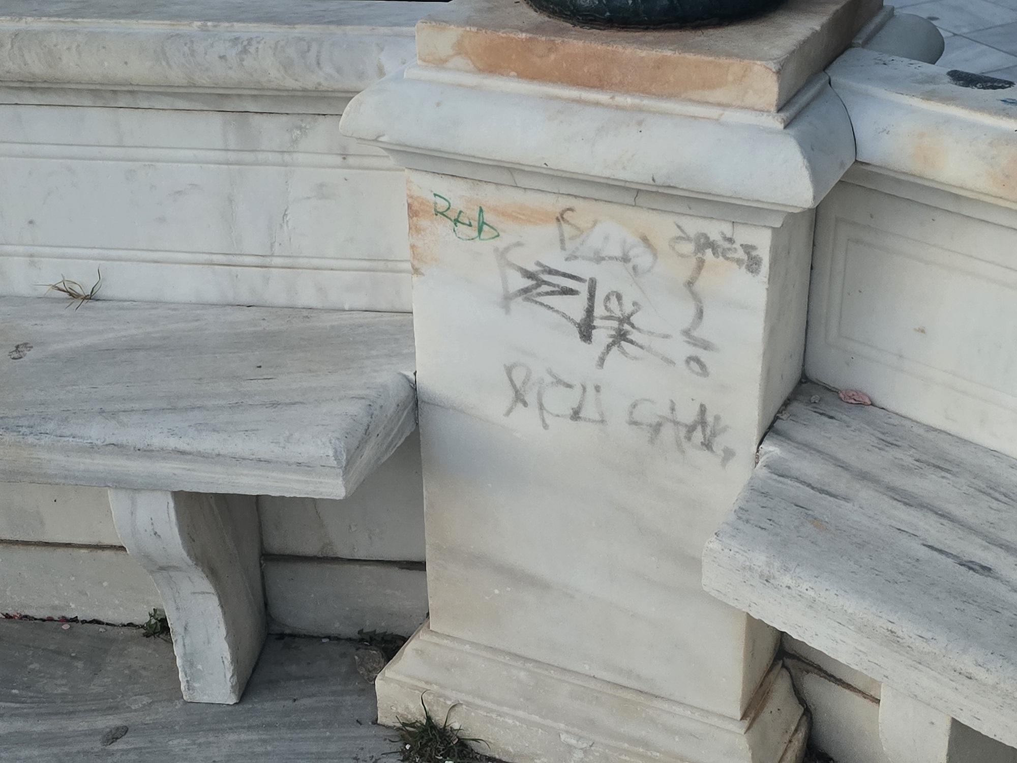 Στη Σύρο πλέον τα γκράφιτι και οι "μουτζούρες" στα δημόσια κτήρια και στα μνημεία της πόλης δεν έχουν τελειωμό.