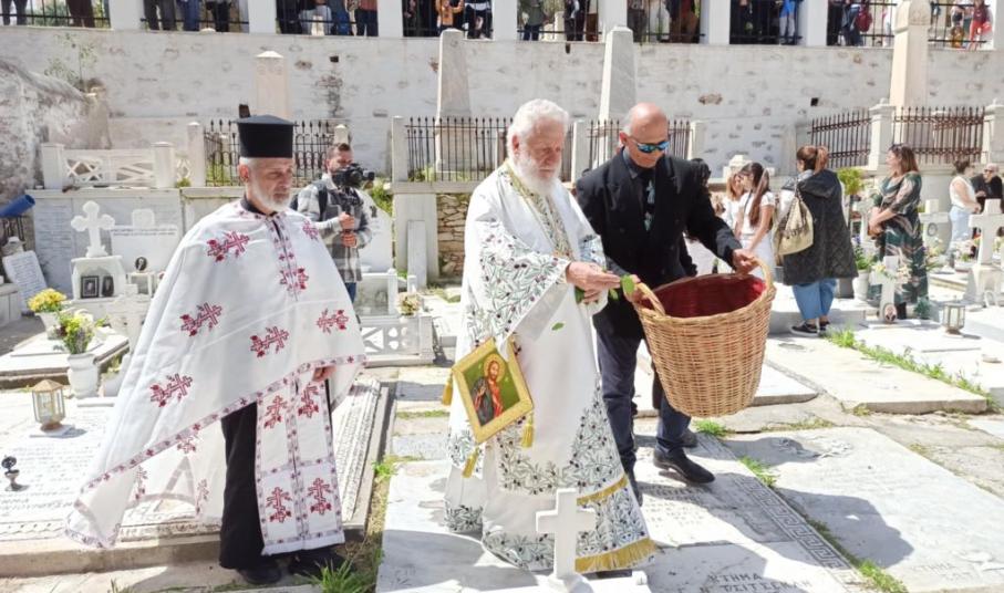 Συγκεκριμένα, το μεσημέρι της Μεγάλης Παρασκευής, μέσα σε κλίμα συγκίνησης από τους δεκάδες πολίτες που είχαν συγκεντρωθεί στο Κοιμητήριο του Αγίου Γεωργίου στην Ερμούπολη, πραγματοποιήθηκε η Ακολουθία της Αποκαθηλώσεως.