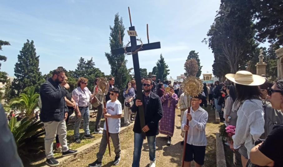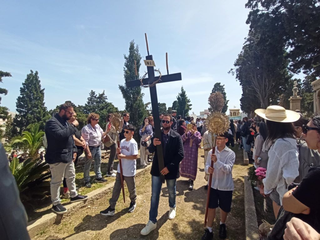 Συγκίνηση, βουβό πόνο και κατάνυξη βίωσαν όσοι παραβρέθηκαν σήμερα το μεσημέρι Μεγάλης Παρασκευής στο κοιμητήριο του Αγίου Γεωργίου, όπου έγινε η περιφορά του επιταφίου διά μέσου των μνημάτων Μεγάλη Παρασκευή. Η ημέρα που οι Χριστιανοί όλου του κόσμου ζουν την κορύφωση του Θείου Δράματος