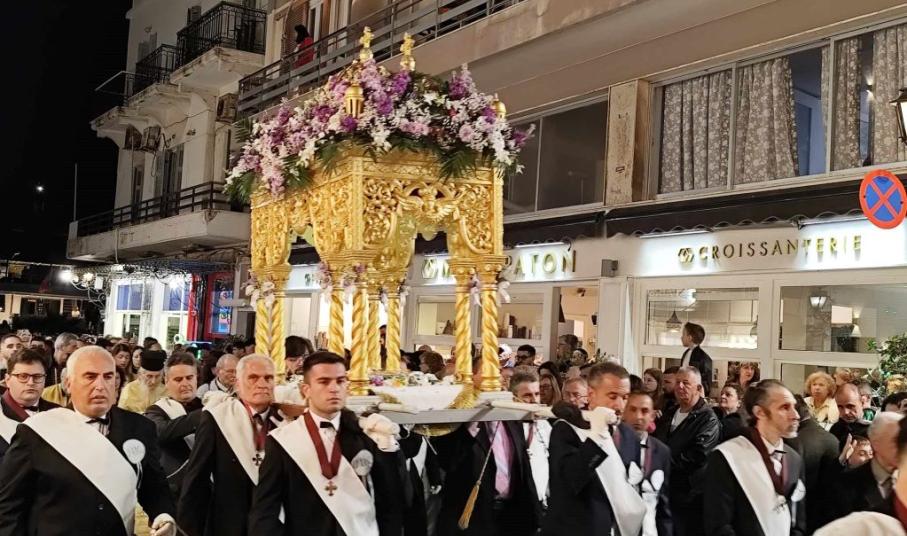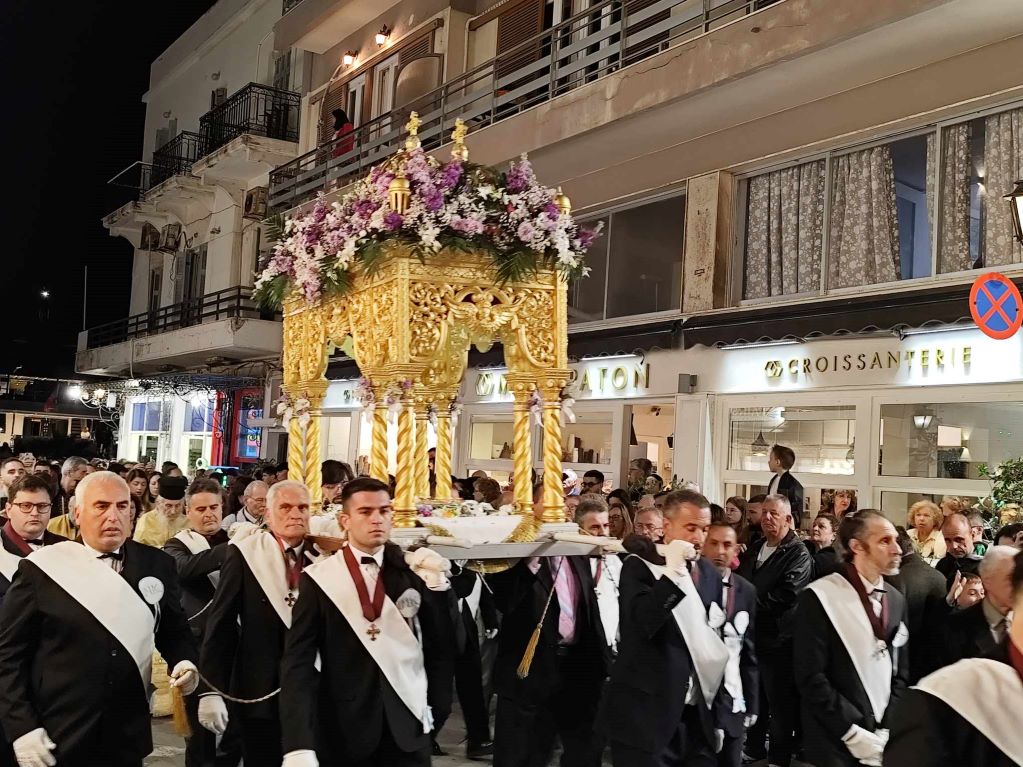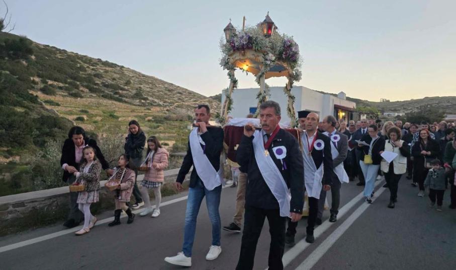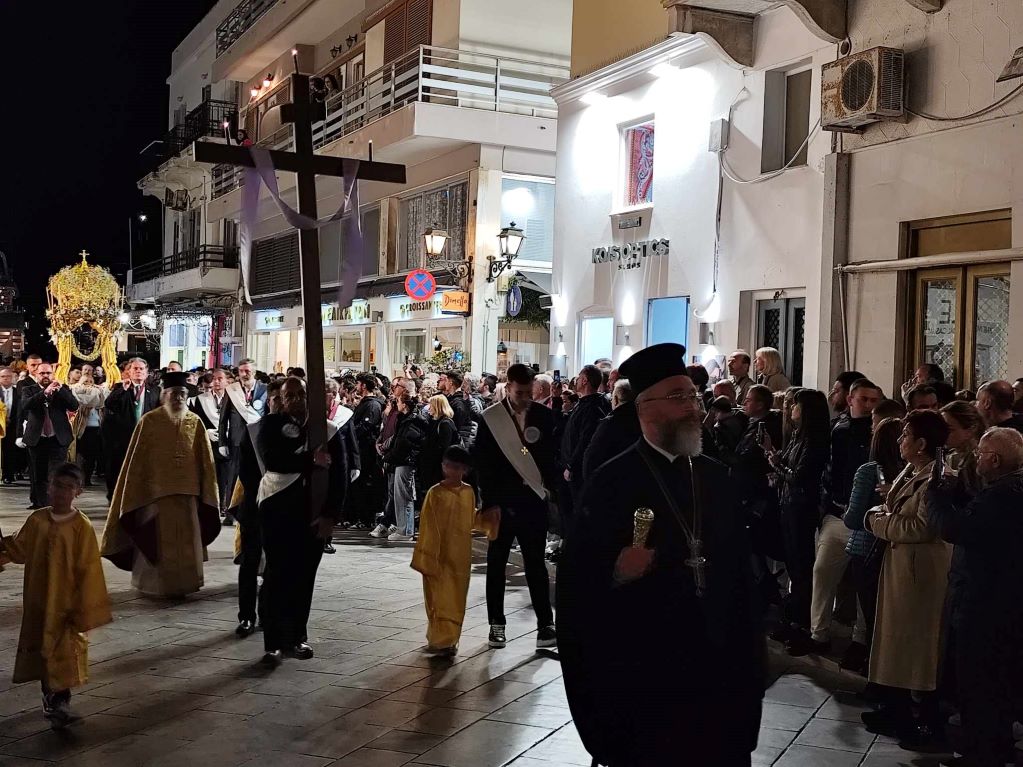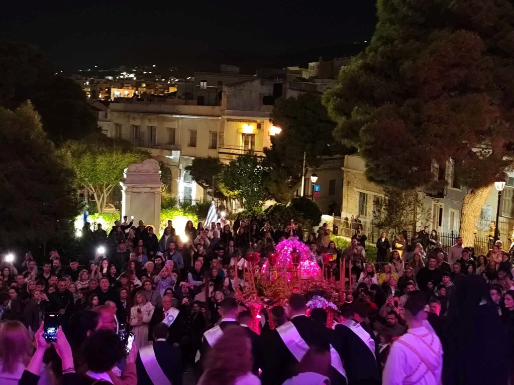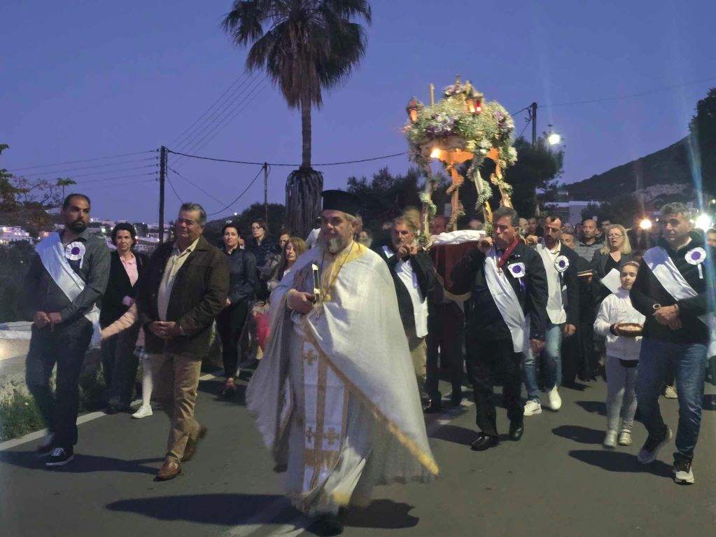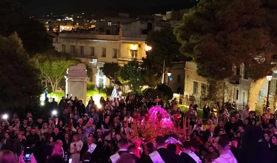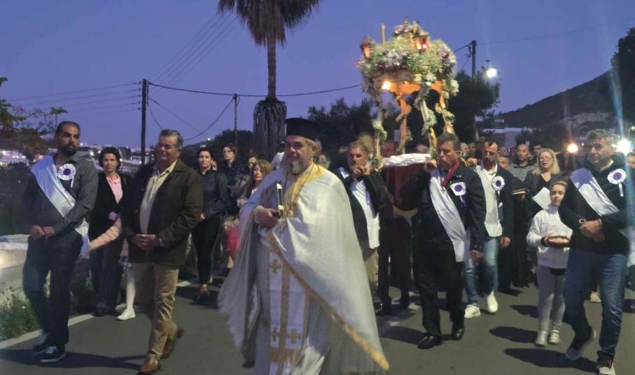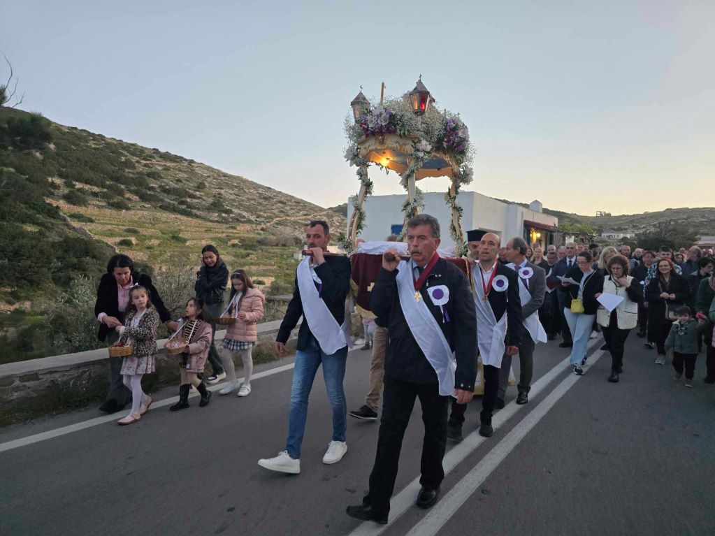 Πλήθος πιστών, μόνιμων κατοίκων, αλλά και παραθεριστών, εκπροσώπων της τοπικής αυτοδιοίκησης α' και β' βαθμού, με επικεφαλής τον γ.γ Νησιωτικής Πολιτικής, Μανώλη Κουτουλάκη, αλλά και εκπροσώπων των Σωμάτων Ασφαλείας και φορεών, με αναμμένα κεριά στα χέρια και ψάλλοντας το “Ω Γλυκύ μου Έαρ” συμμετείχαν στη λιτανεία των τριών επιτάφιων των Ιερών Ναών Κοιμήσεως της Θεοτόκου, Αγίου Νικολάου και Μεταμορφώσεως του Σωτήρος.