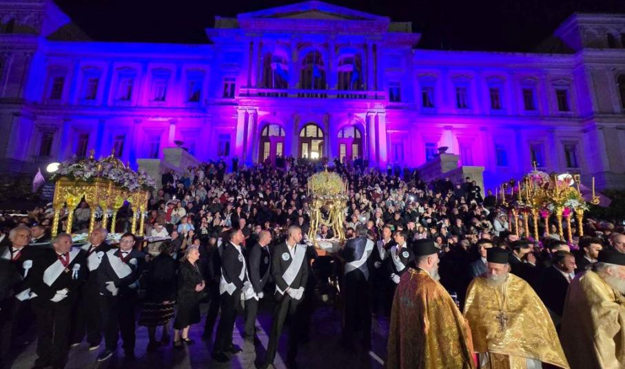 Σύρος: Με ευλάβεια και κατάνυξη η περιφορά των Επιταφίων στην Ερμούπολη