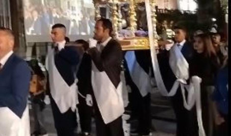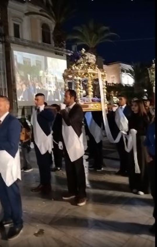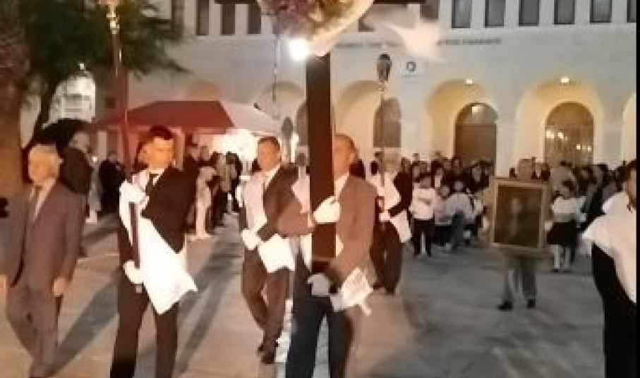 Της συνάντησης των τριών Ορθόδοξων Επιταφίων, προηγήθηκε η περιφορά του Επιταφίου του Ι. Ν. Ευαγγελιστρίας των Καθολικών στην Ερμούπολη.