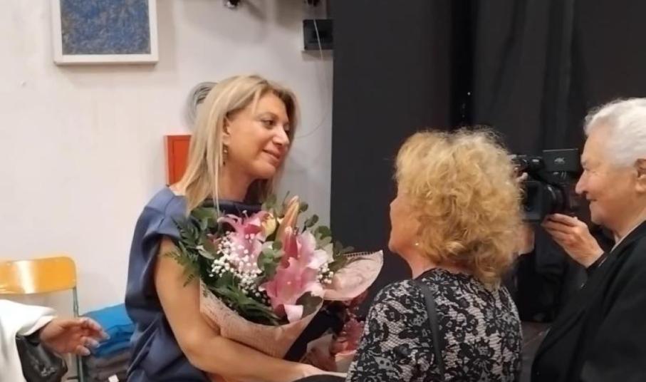 Μετά το τέλος τη εκδήλωσης και την παραλαβή της τιμητικής πλακέτας, η κα. Καρυστιανού συνομίλησε με τους παρευρισκομένους, προσφέροντας την αγκαλιά της, κυρίως στα νέα παιδιά που βρέθηκαν στην αίθουσα για να της μιλήσουν.