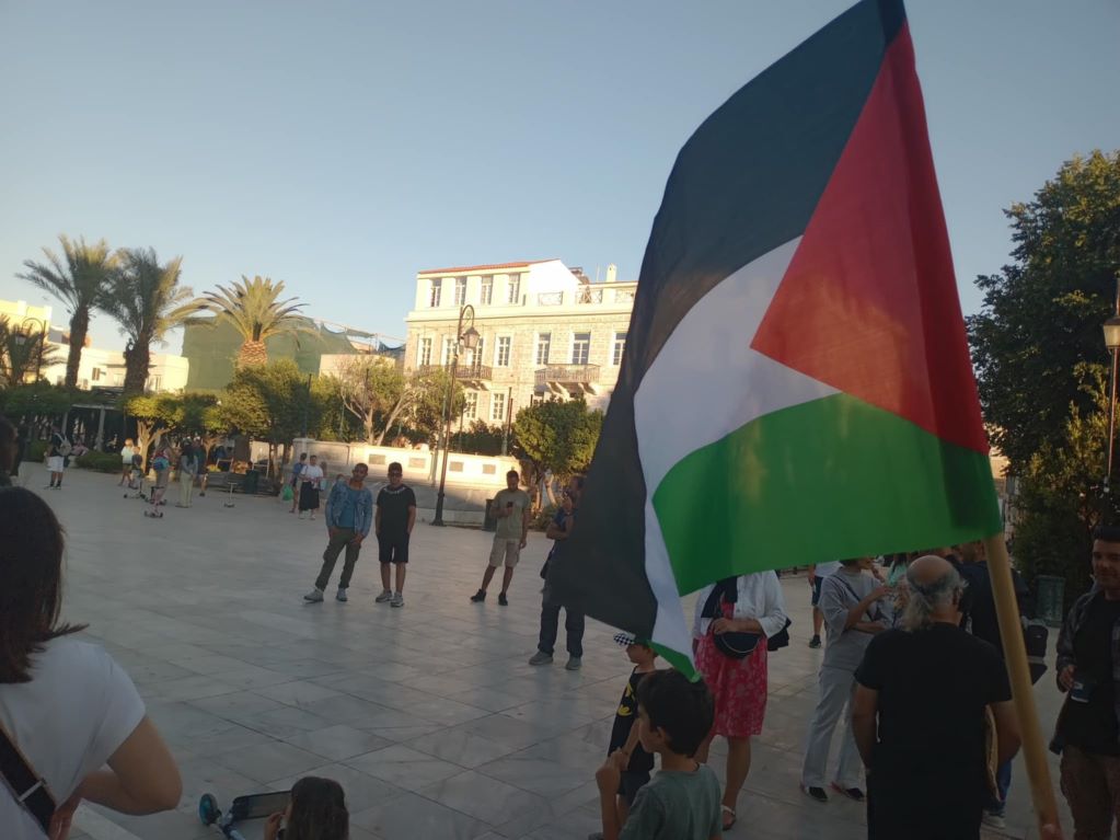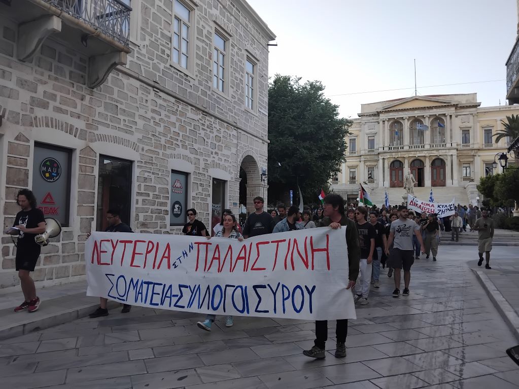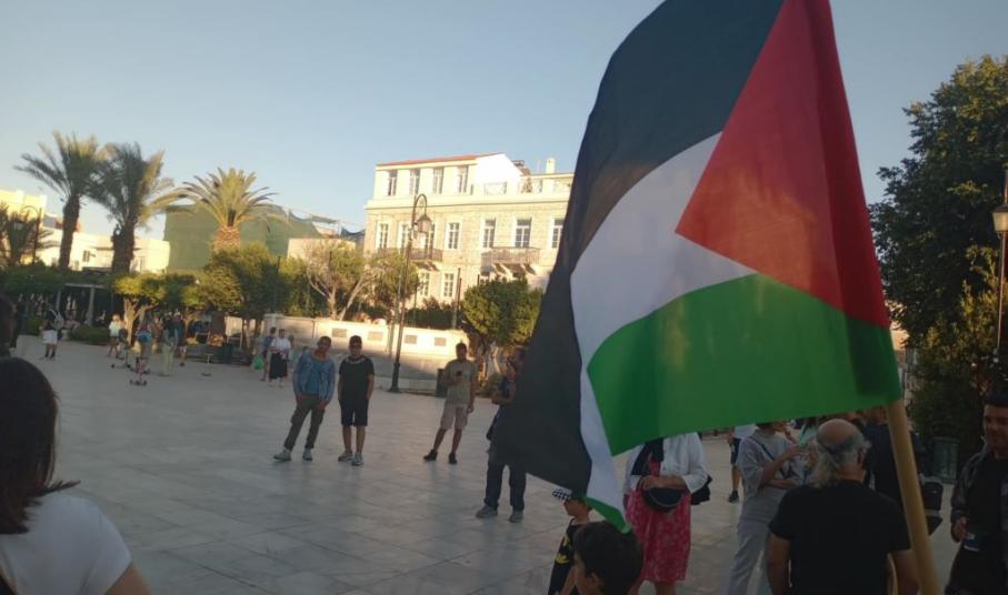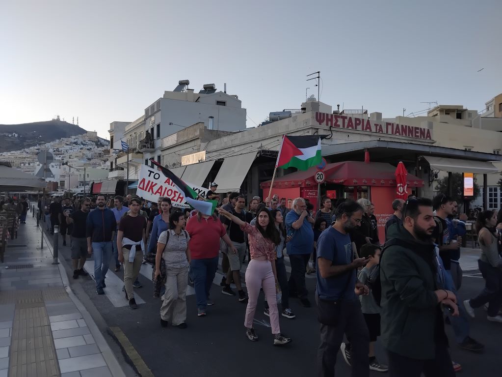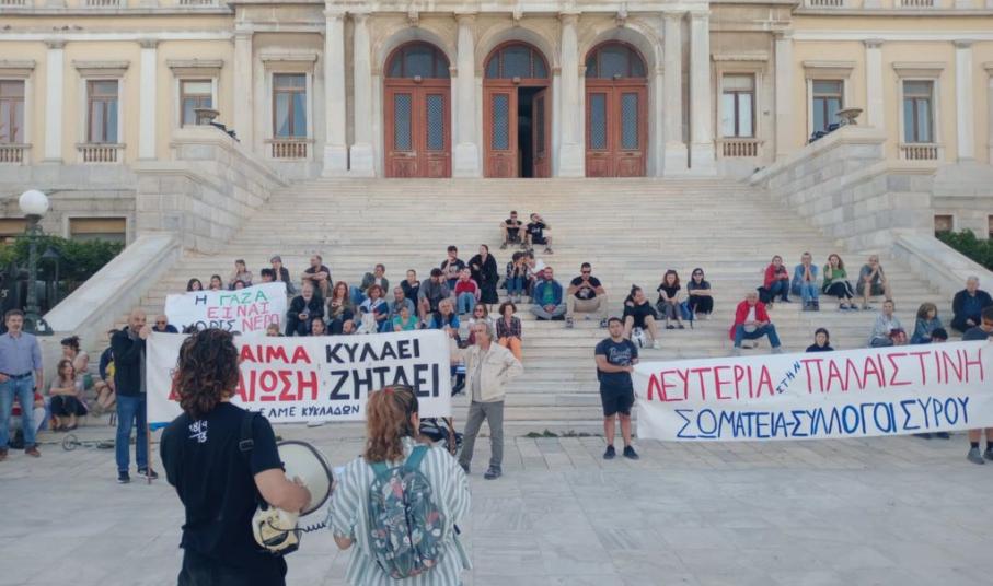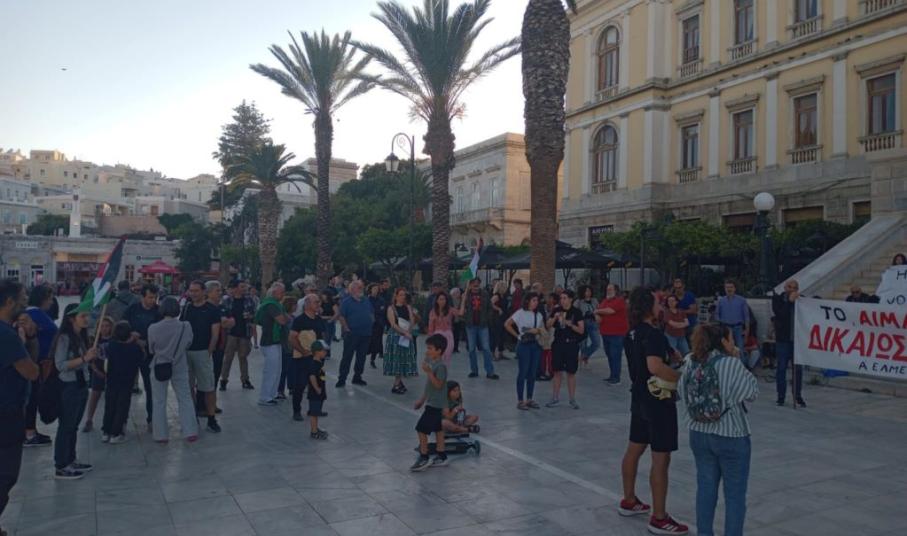 Με σύνθημα "Να σταματήσει τώρα η σφαγή του Παλαιστινιακού λαού", πραγματοποιήθηκε σήμερα το απόγευμα στη Σύρο και συγκεκριμένα στο κέντρο της Ερμούπολης, νέα κινητοποίηση υπέρ του άμαχου πληθυσμού της Γάζας.