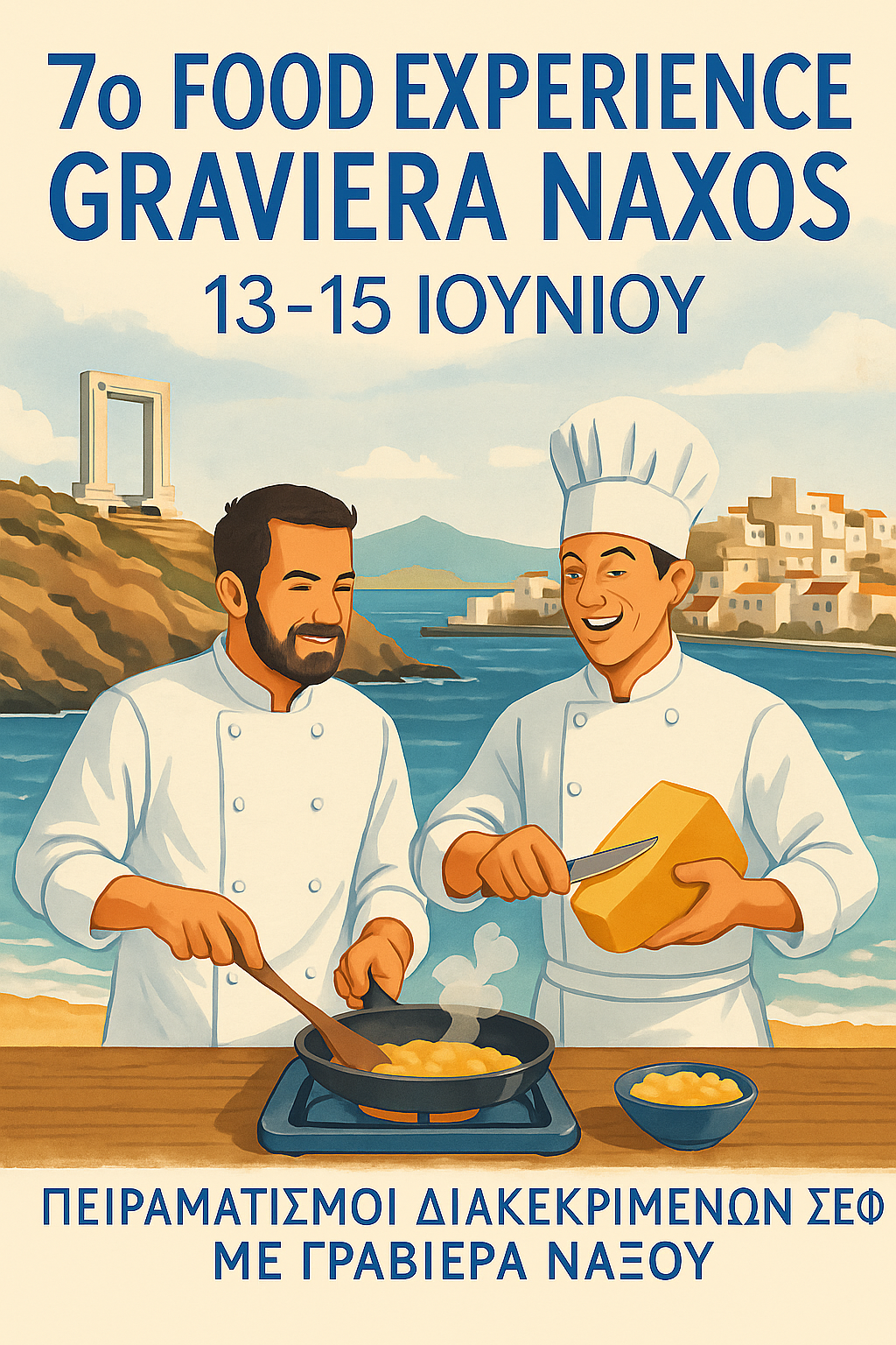Για 7η χρονιά, το μεγάλο γαστρονομικό ραντεβού των Κυκλάδων δίνεται στη Νάξο! Στο νησί, που ο διεθνής Τύπος χαρακτηρίζει ως κορυφαίο γαστρονομικό προορισμό, με ναυαρχίδα τη Γραβιέρα Νάξου Π.Ο.Π. της Ένωσης Αγροτικών Συνεταιρισμών Νάξου, η οποία τα τελευταία χρόνια κατακτά τη δεύτερη θέση των τυριών παγκοσμίως.