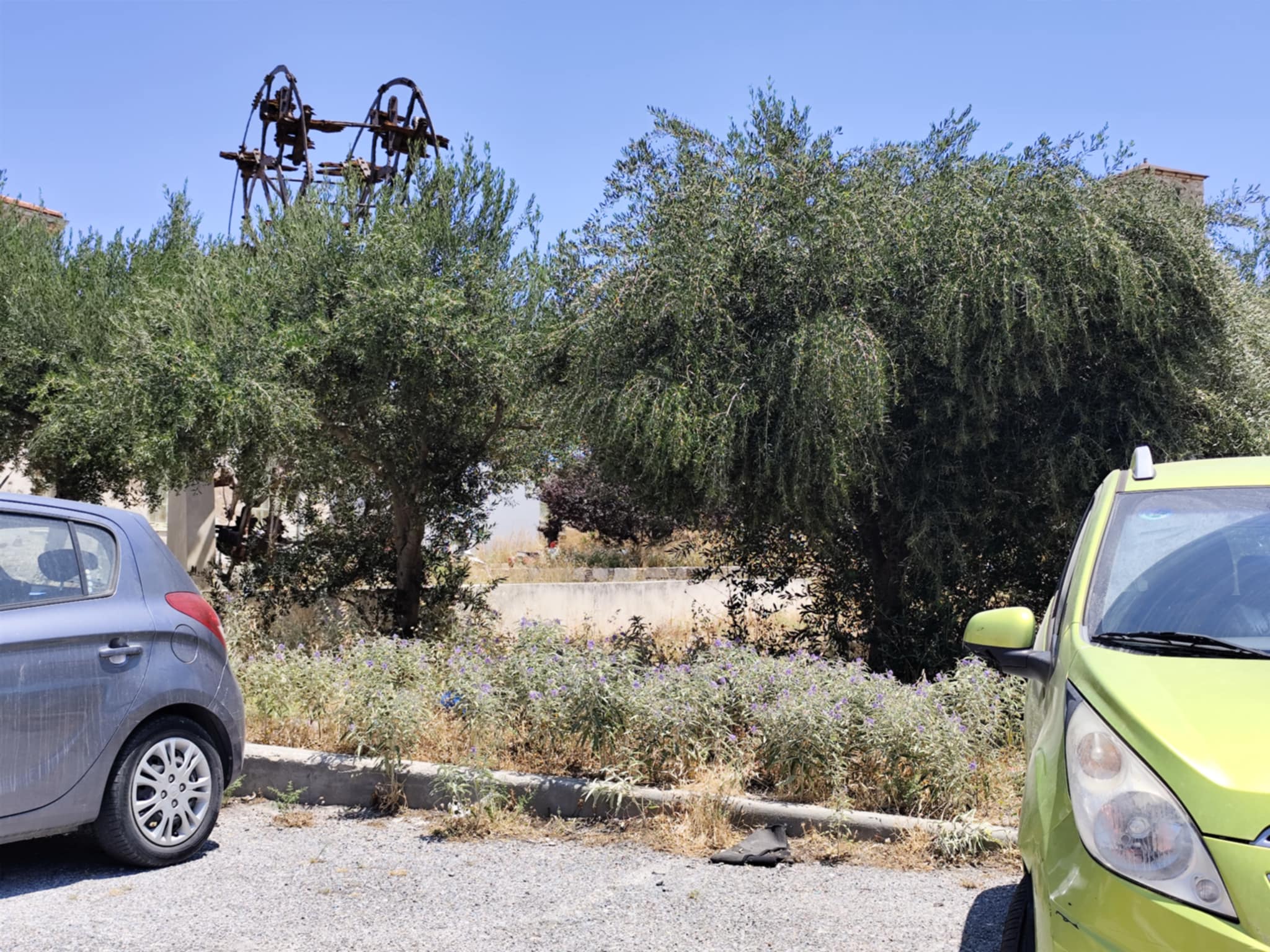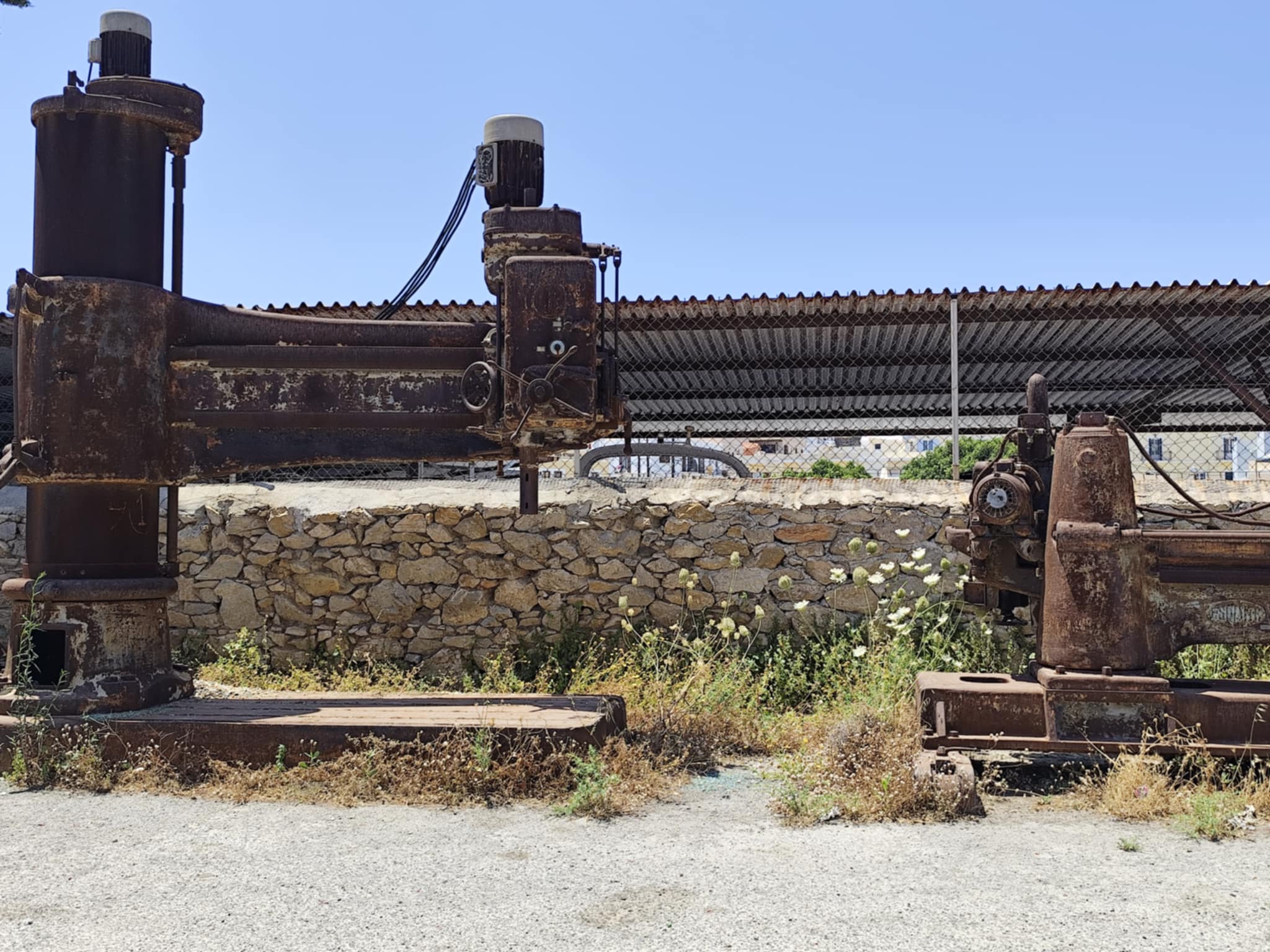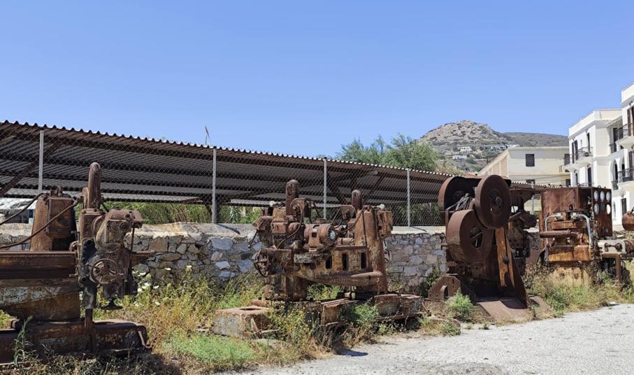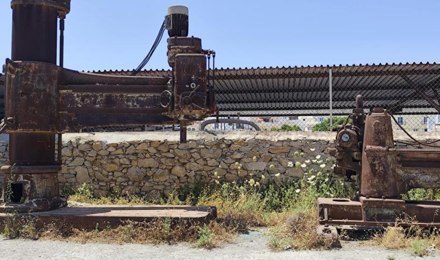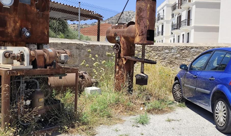 Σε άθλια κατάσταση είναι ο χώρος στάθμευσης όπισθεν του Βιομηχανικού Μουσείου Ερμούπολης, όπως και τα τμήματα της αυλής του, καθώς παραμένει χωρίς αποψίλωση μεγάλη ποσότητα χόρτων.