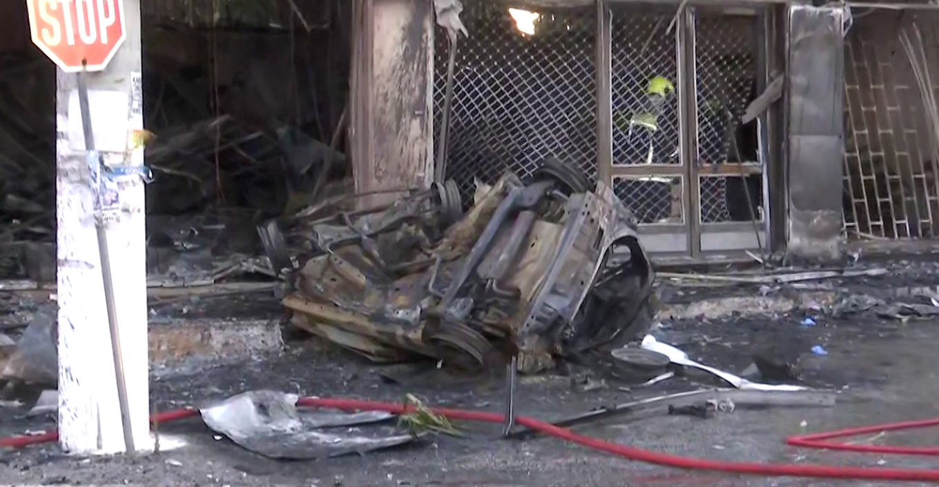 Αποτέλεσμα ήταν να ξεσπάσει φωτιά, από την οποία καταστράφηκε ολοσχερώς και το ΙΧ και το κατάστημα, στο ισόγειο και τον πρώτο όροφο.