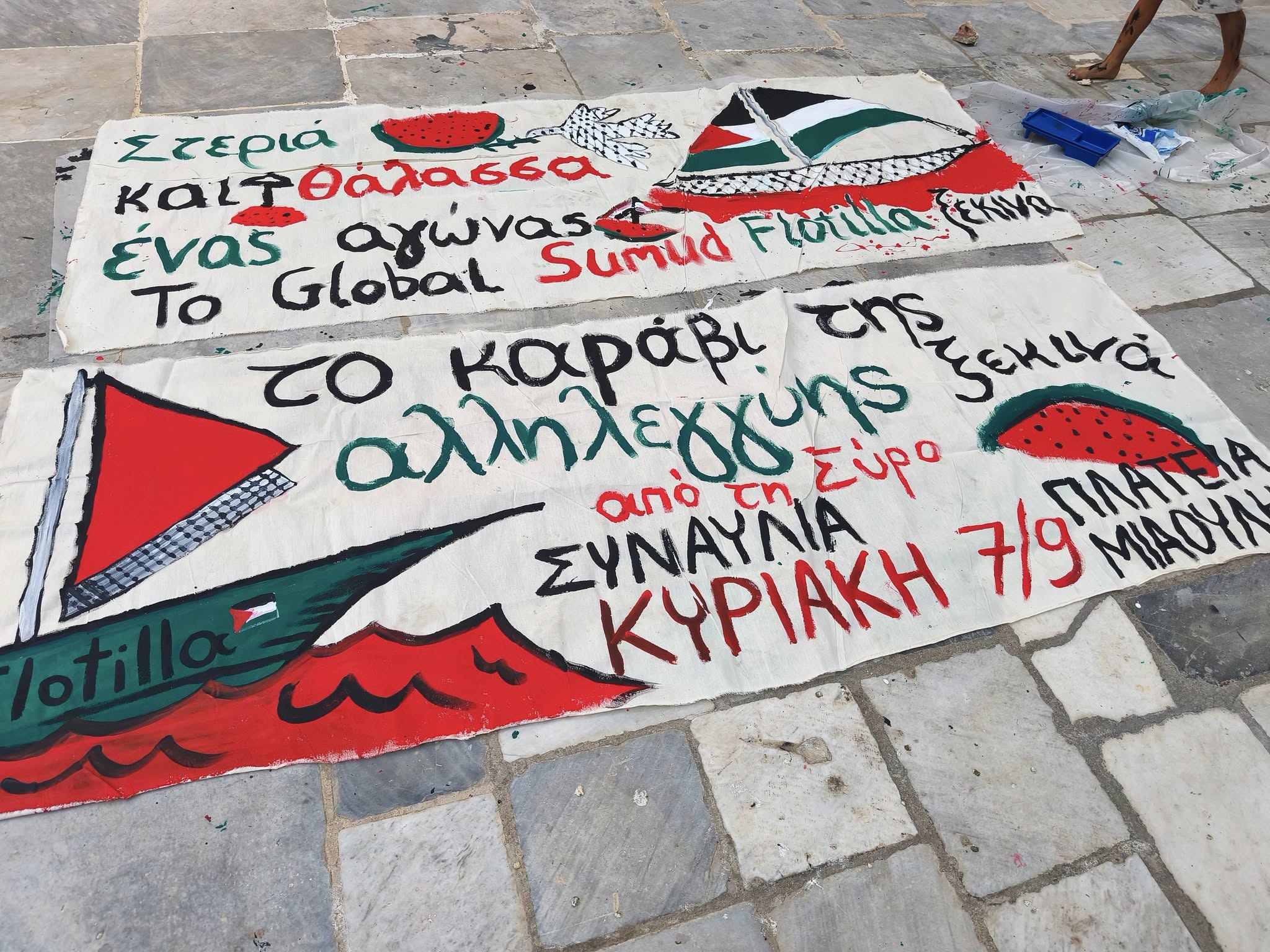 Από τη Σύρο αναμένεται να αποπλεύσει τη Δευτέρα το ελληνικό καράβι του Global Sumud Flotilla, προκειμένου να συναντήσει δεκάδες ακόμη σκάφη και πληρώματα από 44 χώρες, με στόχο να σπάσει τον παράνομο αποκλεισμό της Γάζας και να αναδείξει εκ νέου τη φωνή του παλαιστινιακού λαού.