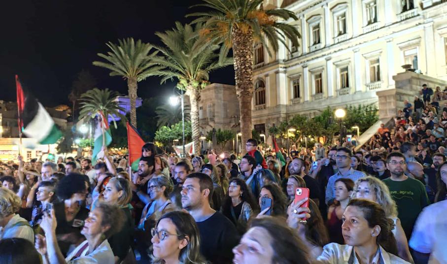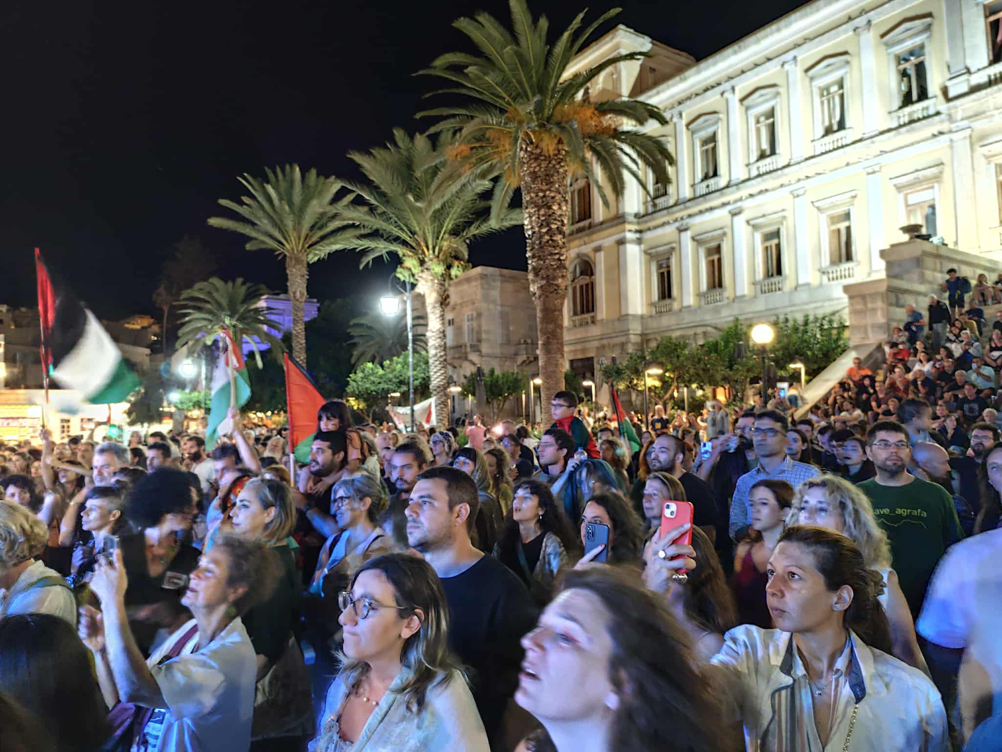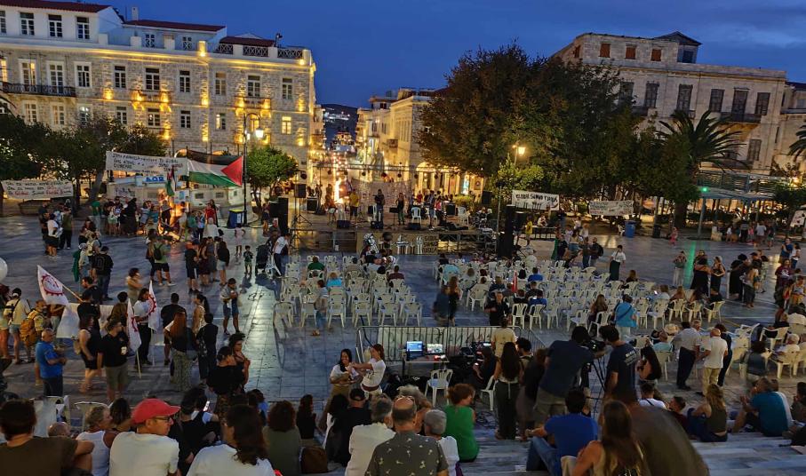 "Την Κυριακή 7η Σεπτεμβρίου, η πλατεία Μιαούλη στη Σύρο γέμισε ασφυκτικά για την εκδήλωση παρουσίασης της ελληνικής αποστολής του Global Sumud Flotilla. Ο συριανός λαός, αλλά και ο κόσμος της αλληλεγγύης από όλη τη χώρα, έδωσε βροντερό παρών, στέλνοντας το μήνυμα ότι η αλληλεγγύη είναι το οξυγόνο που μας κρατά ζωντανούς μπροστά στη γενοκτονία που διαπράττει το Ισραήλ στη Γάζα.