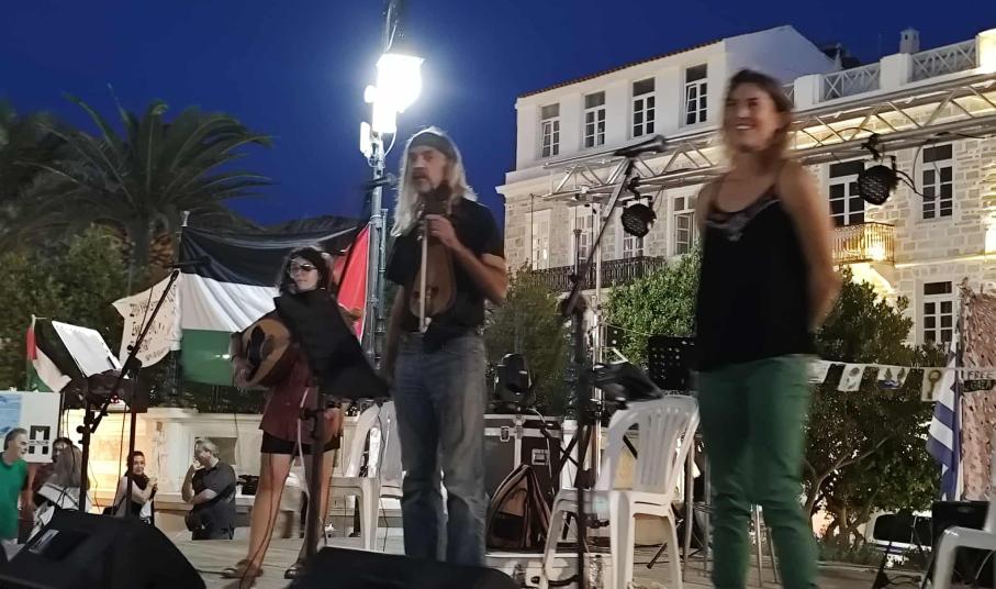 Η βραδιά πλαισιώθηκε από μουσική παρέμβαση καλλιτεχνών που ένωσαν τη φωνή τους με τον αγώνα για μια ελεύθερη Παλαιστίνη, καθώς και από εργαστήρια κατασκευής σημαιών και πανό αλληλεγγύης.