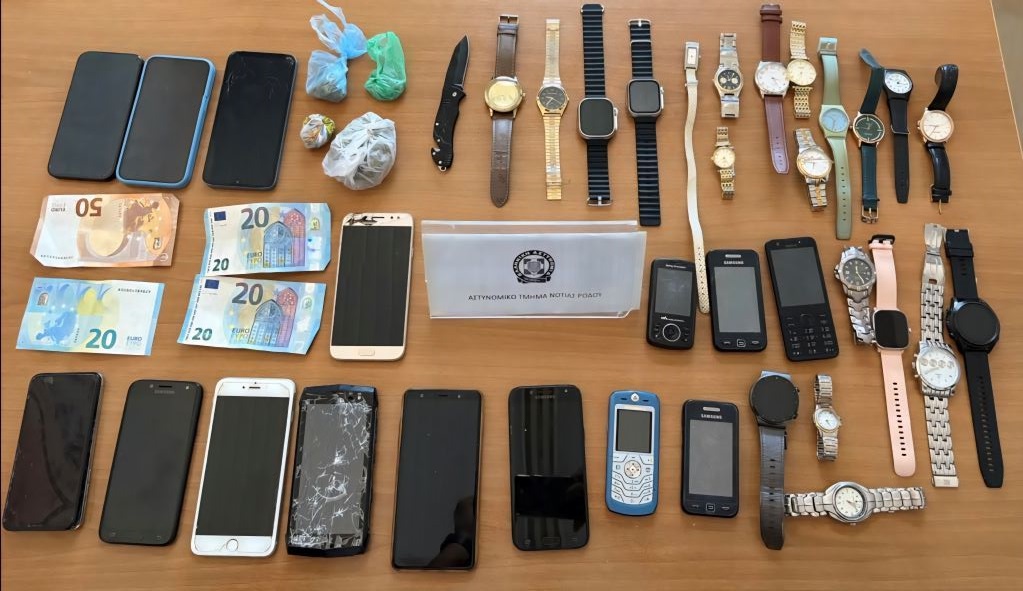 Ακολούθησε έρευνα στην κατοικία του 19χρονου κατά την οποία βρέθηκαν και κατασχέθηκαν 20 ρολόγια και 14 κινητά τηλέφωνα, η προέλευση των οποίων ερευνάται.