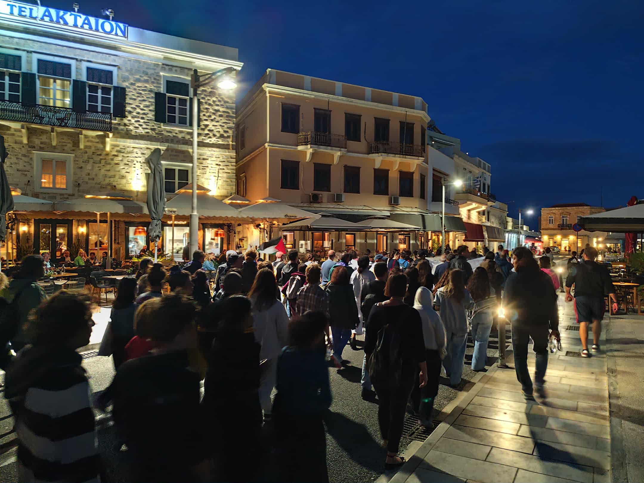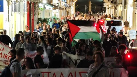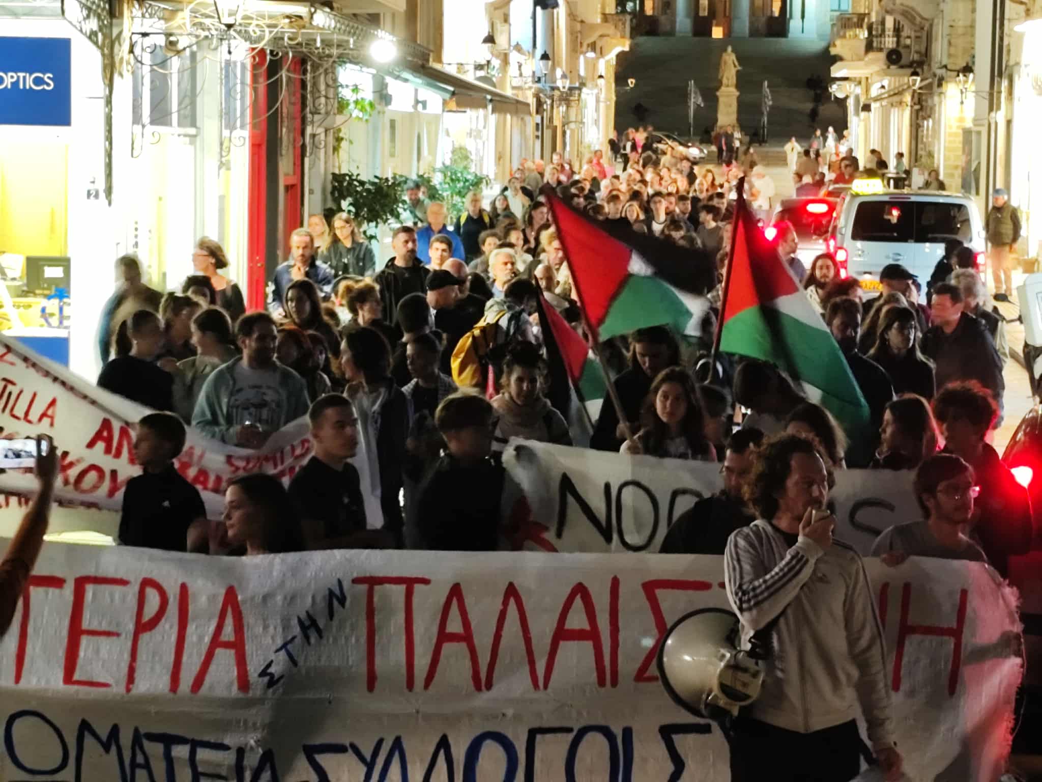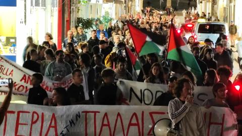 Σε συνέχεια πολλών ανακοινώσεων και καλεσμάτων που εξέδωσαν σήμερα το πρωί, Σωματεία και Σύλλογοι της Σύρου και των Κυκλάδων, με φόντο τη στάση του Ισραήλ να αναχαιτίσει τα σκάφη του στολίσκου προς τη Γάζα, διοργάνωσαν και πορεία στους δρόμους της Ερμούπολης.