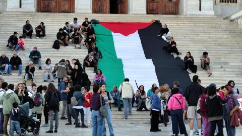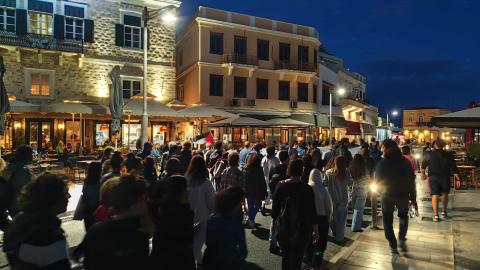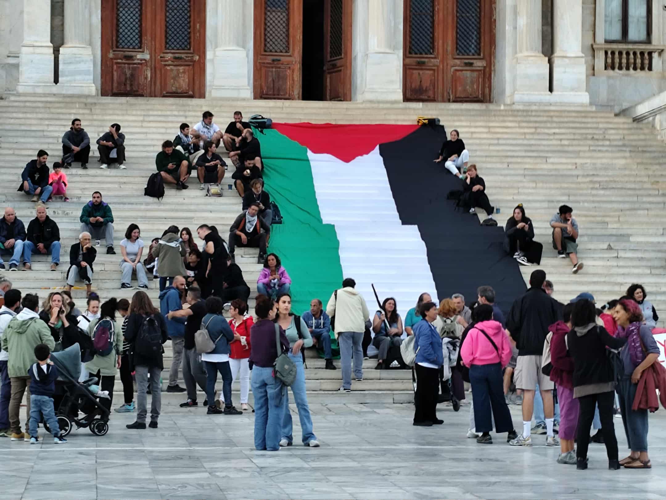 Τη στήριξή τους στους επιβαίνοντες του στολίσκου Global Sumud Flotilla στην πορεία προς τη Γάζα εξέφρασαν πολίτες της Σύρου που πραγματοποίησαν σήμερα συγκέντρωση στην πλατεία Μιαούλη.
