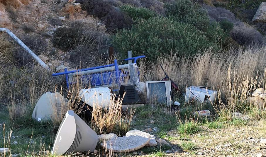 Επιπλέον, έχουν μεταφερθεί απορρίμματα αλλά και ένα μικρό στρώμα, παλιό καζάνι θερμοσίφωνα και καρέκλες.