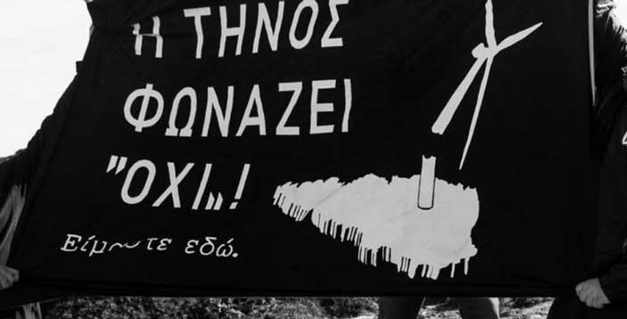 Η υπόθεση αυτή δεν αφορά μόνο στην Τήνο. Αφορά στο δικαίωμα των πολιτών στη διαμαρτυρία ενάντια στην πολιτική που ευνοεί την επέλαση της, καταστροφικής για το περιβάλλον της χώρας μας, ενεργειακής φρενίτιδας: στεριές, θάλασσες και νησιά, βουνά και αγροτική γη, δάση, ποτάμια και λίμνες γίνονται βορά στην αδηφάγα ενεργειακή βιομηχανία. Αφορά στην ελευθερία της έκφρασης και στη δυνατότητα των τοπικών κοινωνιών να διεκδικούν περιβαλλοντική και κοινωνική δικαιοσύνη και συμμετοχή στη λήψη αποφάσεων που αφορούν στο μέλλον του τόπου τους. Αφορούν στην υπεράσπιση των κοινών αγαθών που αποστερούνται από την κοινωνική πλειοψηφία για να παραδοθούν στην αυτοκτονική για το μέλλον του πλανήτη εμπορευματοποίηση του φυσικού περιβάλλοντος: του νερού, του δημόσιου αστικού χώρου, του βουνού, του δάσους...