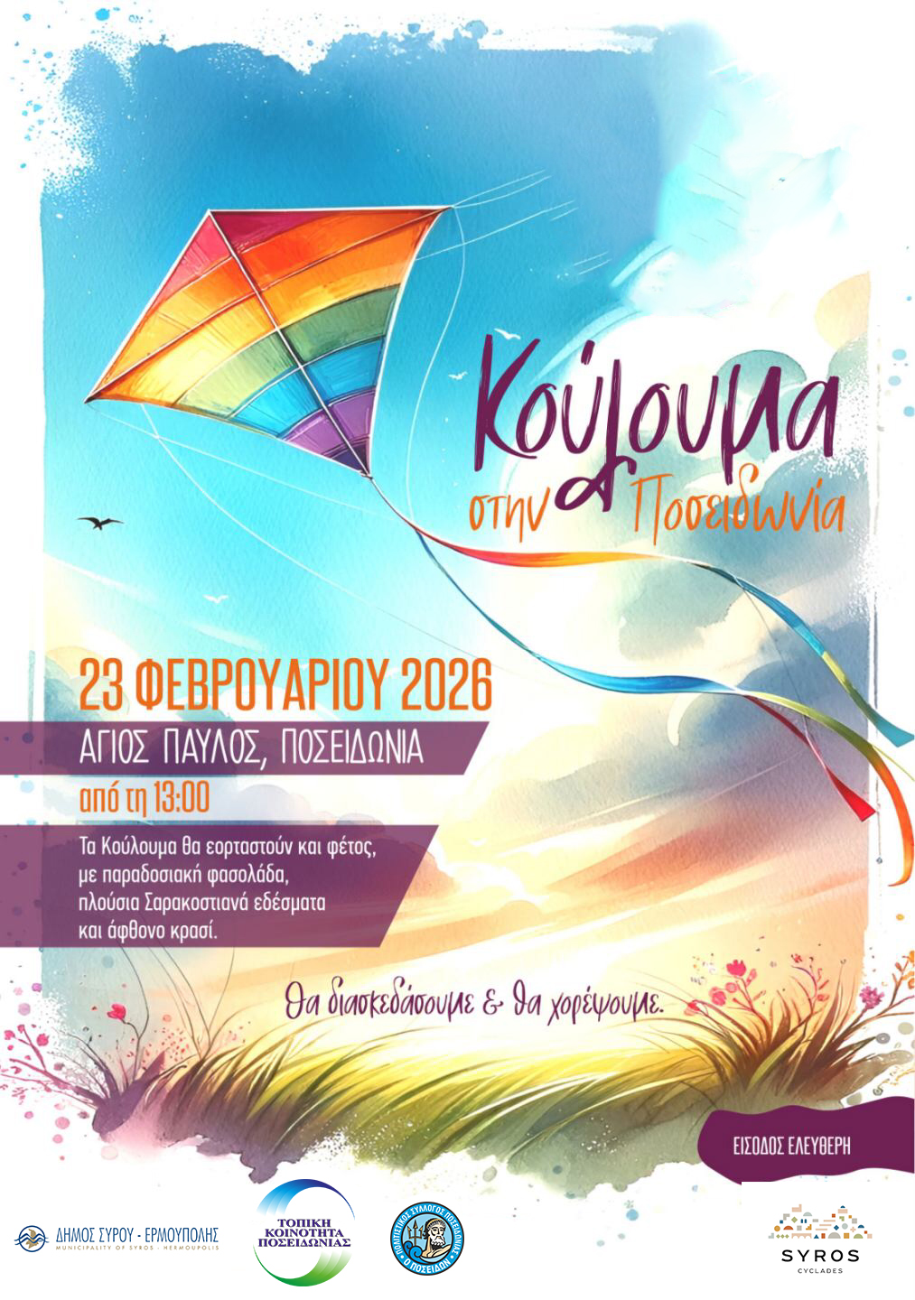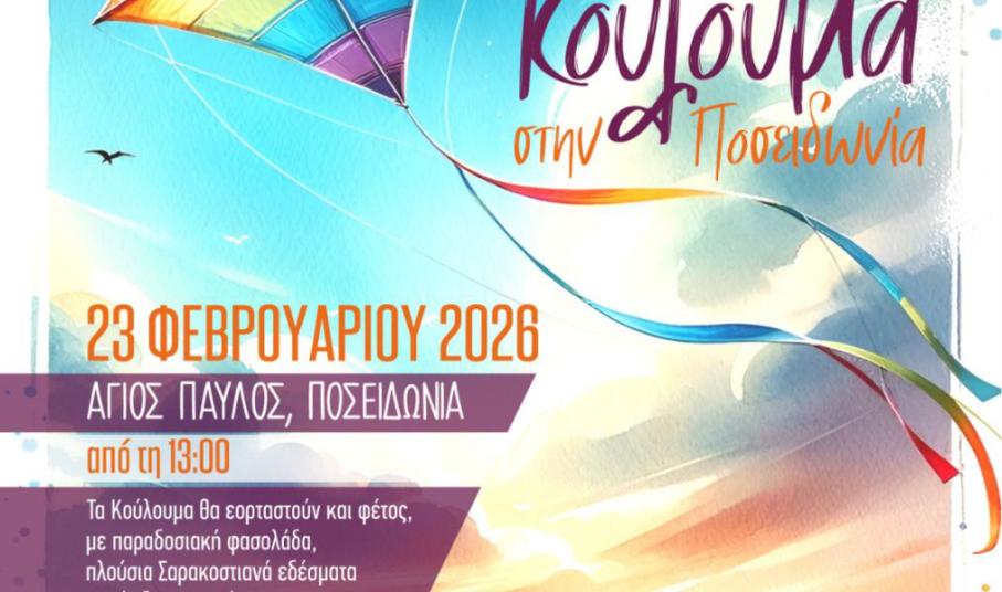 "Σας προσκαλούμε να γιορτάσουμε και φέτος όλοι μαζί τα παραδοσιακά Κούλουμα στην Ποσειδωνία, την Καθαρά Δευτέρα 23 Φεβρουαρίου 2026, στον χώρο του Ποιμαντικού Κέντρου «Άγιος Παύλος», από τη 1 το μεσημέρι.