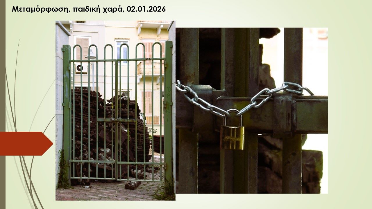 - Κηπάριο Μεταμόρφωσης: Ένας άψογα διαμορφωμένος και λειτουργικός χώρος στο Κέντρο της Ερμούπολης, παραμένει κλειδωμένος ελλείψει ανθρώπου που θα μπορούσε να τον ανοίγει το πρωί και να τον κλειδώνει το βράδυ.