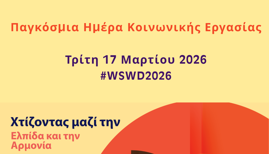 Με κεντρικό μήνυμα για το 2026 «Χτίζοντας μαζί την ελπίδα και την αρμονία», η φετινή Παγκόσμια Ημέρα Κοινωνικής Εργασίας αναδεικνύει τη σημασία της συλλογικής δράσης και της αλληλεγγύης για την οικοδόμηση ισχυρότερων κοινοτήτων.