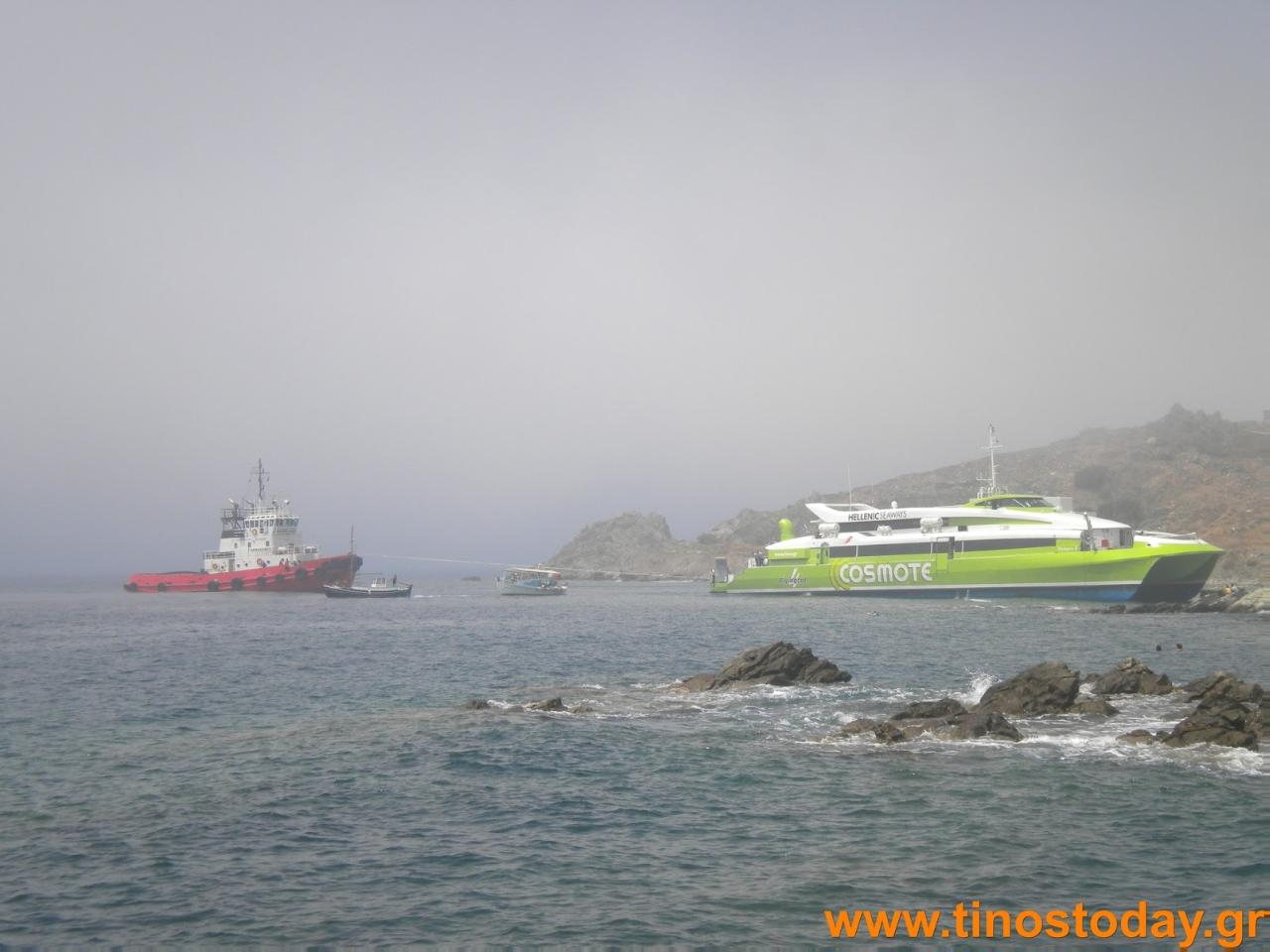 Άμεσο αίτημα υπήρξε από την πλευρά της εταιρείας για μετάβαση ρυμουλκού πλοίου στο σημείο και συγκεκριμένα το ρυμουλκό Armadores το οποίο κατέπλευσε στην Τήνο από τη Μύκονο, προκειμένου να βοηθήσει στην ρυμούλκηση του καταμαράν.