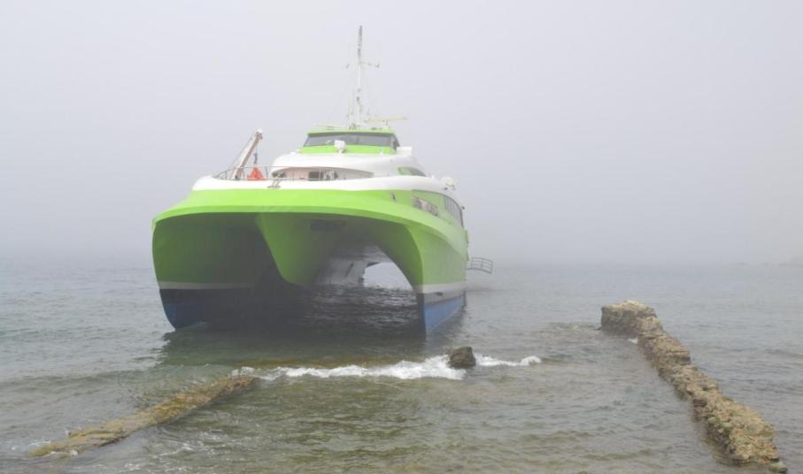 Νωρίς εχθές το πρωί, περίπου στις 9.30 π.μ., το καταμαράν Flying Cat 4 παρέκκλινε της πορείας του προς το λιμάνι της Τήνου, με αποτέλεσμα να προσαράξει σε αβαθή, σε κόλπο που βρίσκεται στην δυτική πλευρά του λιμανιού, την ώρα που πυκνή ομίχλη κάλυπτε ολόκληρη την περιοχή, περιορίζοντας στο ελάχιστο την ορατότητα.