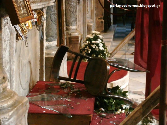 «Πέρασε λοιπόν μία δύσκολη μέρα για όλους μας. Μία ημέρα κατά την οποία η Παναγία μας όπως επέτρεψε να μπουν και να λεηλατήσουν το ναό της αψηφώντας όλα τα μέτρα ασφαλείας, δεν επέτρεψε να φύγουν και από το νησί και ειδικά από το ναό της, εκατοντάδες τάματα και δωρεές συνανθρώπων μας προς το πρόσωπό της. Τάματα που για πολλούς μπορεί να είχαν μικρή οικονομική αξία, αλλά ανεκτίμητη συναισθηματική.
