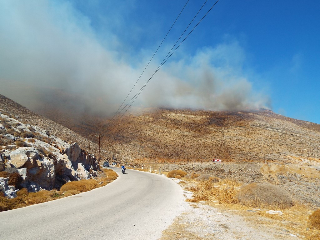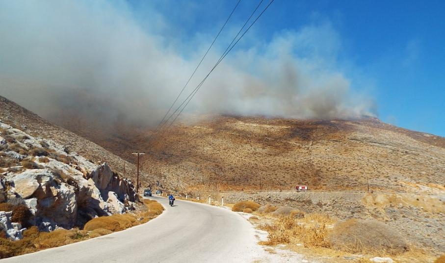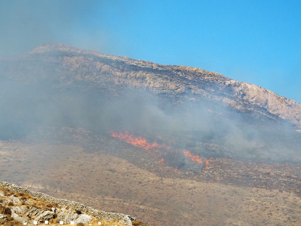 Οι μνήμες των ημερών του Ιουλίου ξύπνησαν για τους κατοίκους του νησιού, με την πυρκαγιά που ξέσπασε το πρωί της Τρίτης, στη θέση «Κοράκι» της Ερμούπολης, λαμβάνοντας αστραπιαία έκταση, σε όλο το λόφο, κατακαίγοντας συνολικά περίπου 350 στρέμματα χορτολιβαδικής έκτασης.