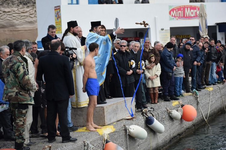 Με τη δέουσα λαμπρότητα πραγματοποιήθηκε ο εορτασμός των Θεοφανείων σε πολλά νησιά των Κυκλάδων, με τους πιστούς να συμμετέχουν ευλαβικά στις καθιερωμένες τελετές του Αγιασμού των Υδάτων και κάποιοι εξ αυτών να τολμούν να τηρούν το παραδοσιακό έθιμο και να ρίχνονται στη “μάχη” με το κρύο για να πάρουν την ευλογία του Τιμίου Σταυρού, μετά τη ρίψη αυτού στη θάλασσα.