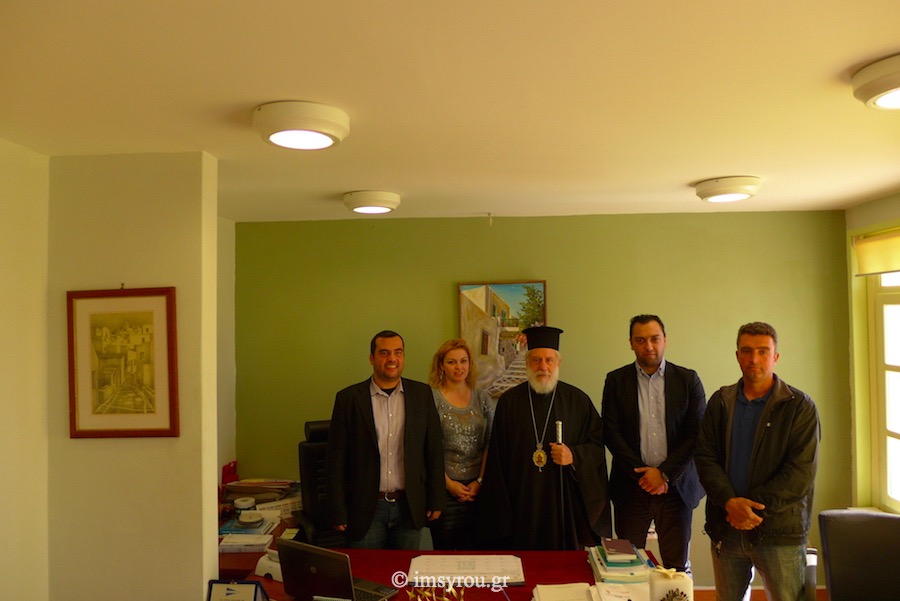 Κατόπιν, επισκέφθηκε το Δημαρχείο Κύθνου, ευχήθηκε στους Υπαλλήλους και τους Εργαζομένους και είχε σύντομη συζήτηση για θέματα που άπτονται του ποιμαντικού έργου της Μητρόπολης Σύρου.